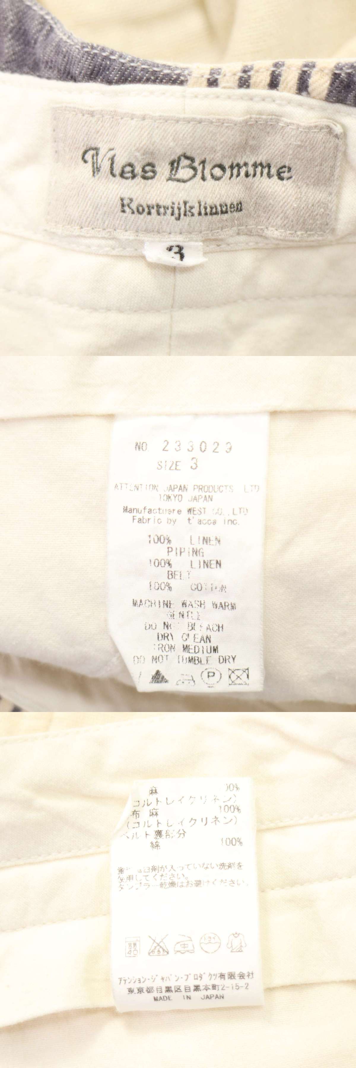 Vlas Blomme ヴラスブラム 春夏★ コルトレイク リネン ショート パンツ ショーツ Sz.3 メンズ 日本製