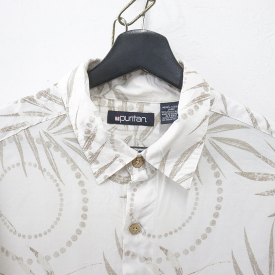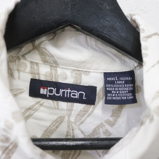 V762 2000年代製 Puritan ピューリタン 半袖シャツ■00s 表記Lサイズ アイボリー レーヨン 総柄 アメカジ ストリート 古着 古着卸 激安