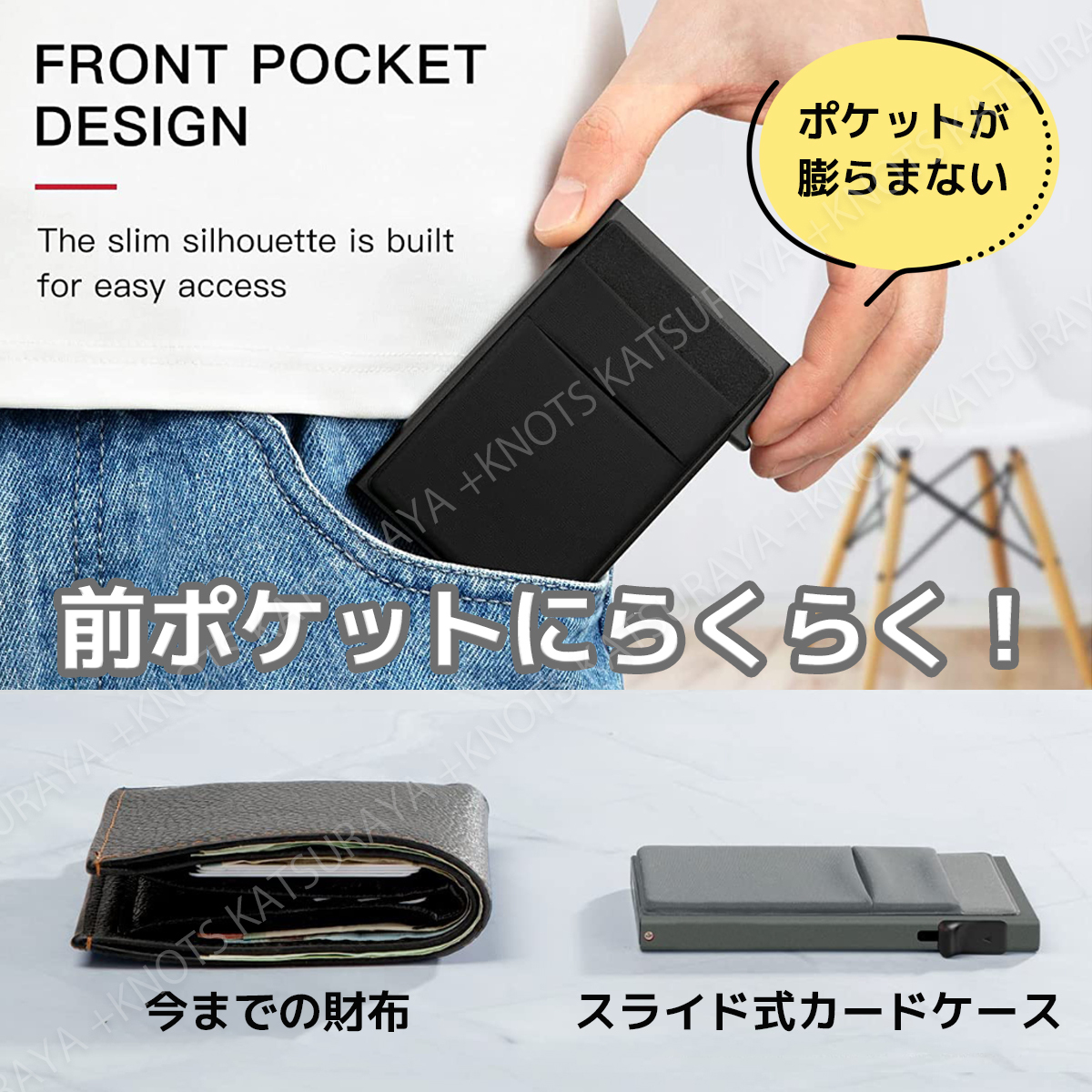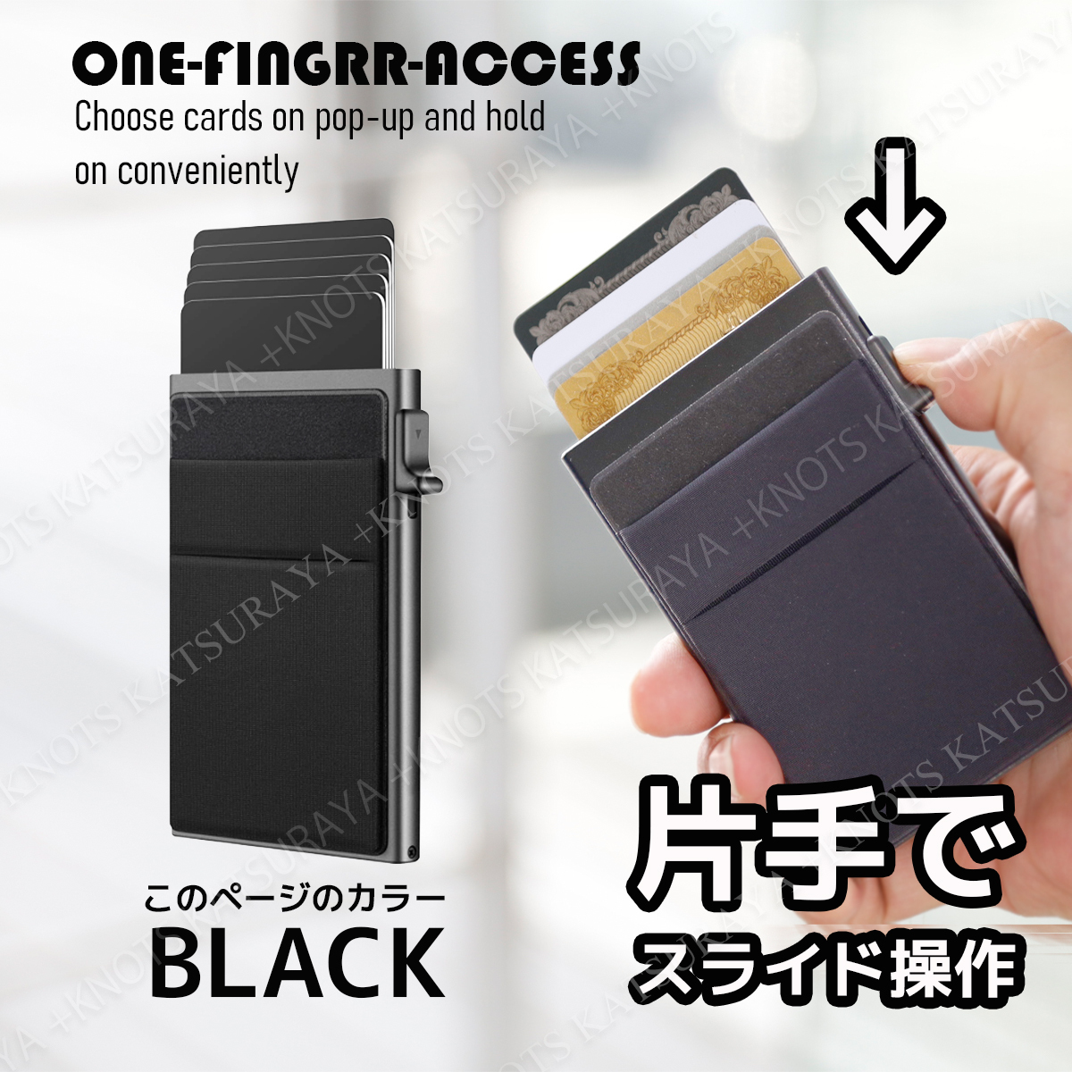 スライド式カードケース片手操作★ブラック黒★カード入れ メンズ レディース スキミング防止 ミニ財布 小さい薄い カード飛び出す財布a391