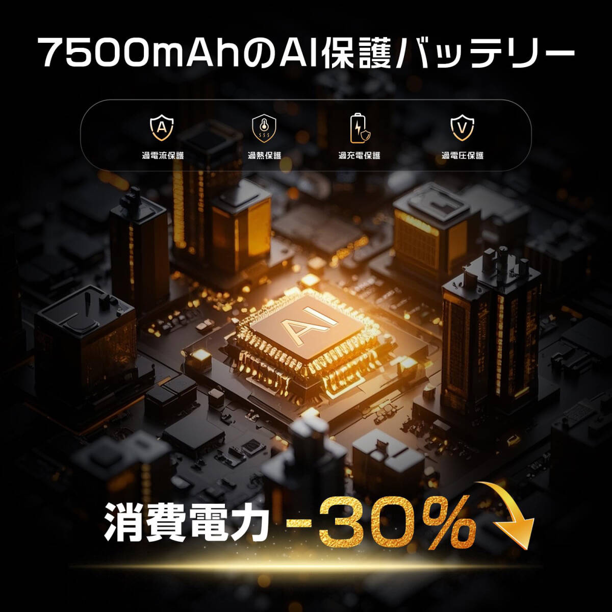 ・バッテリー:7500mAh(最大使用時間 約150分)
