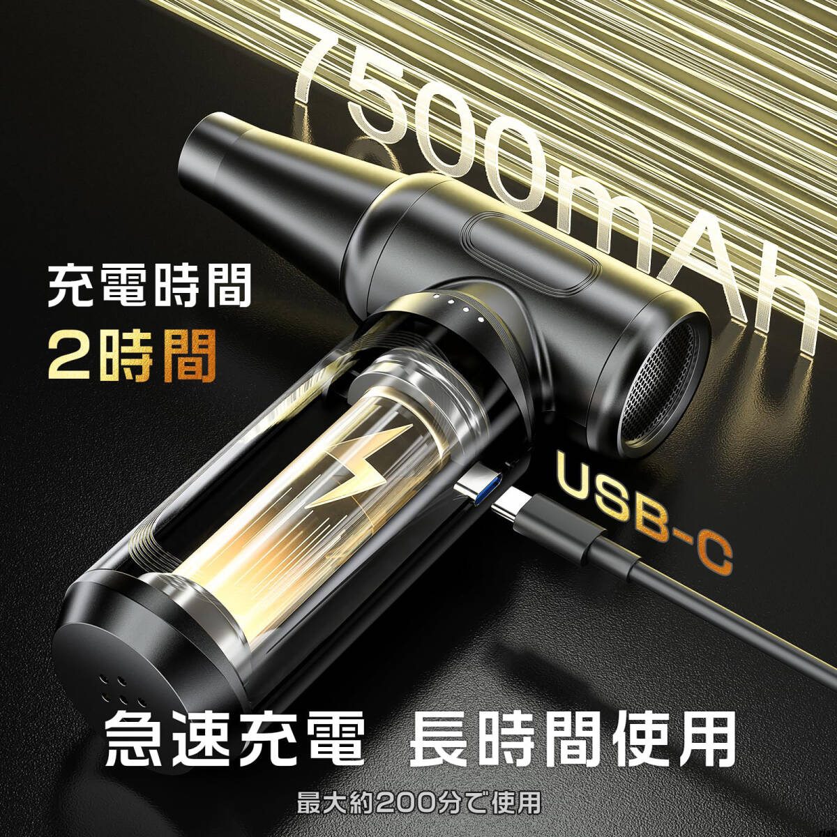 【小型コードレスの電動エアダスター】 電動ブロワー ダブルタービン コンパクト USB充電 車内クリーニング PC掃除 高出力