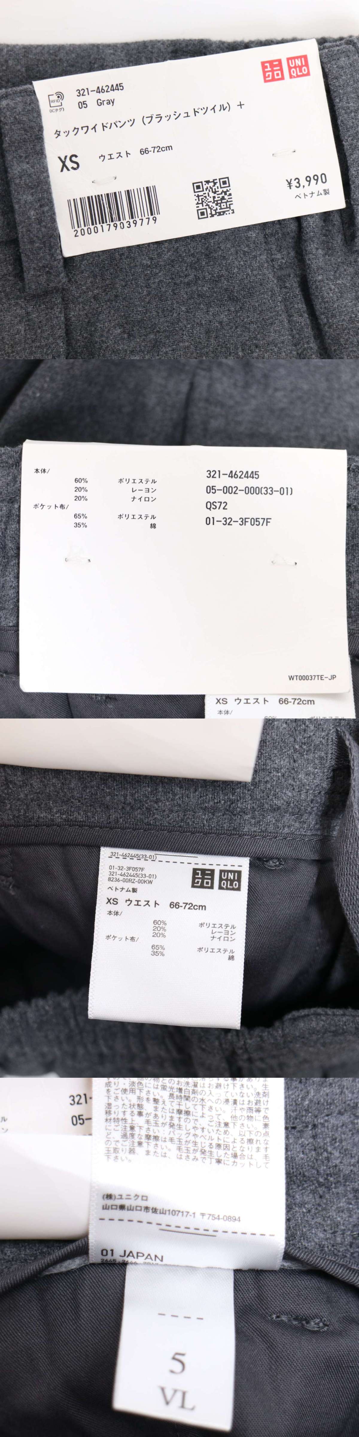 新品 23AW★ UNIQLO ユニクロ 秋冬 ブラッシュドツイル ストレッチ タック ワイド スラックス パンツ Sz.XS メンズ グレー