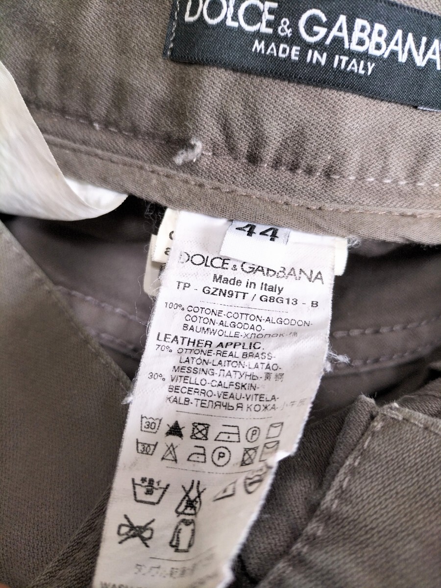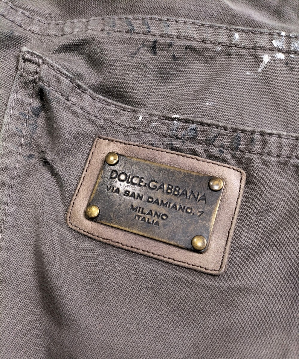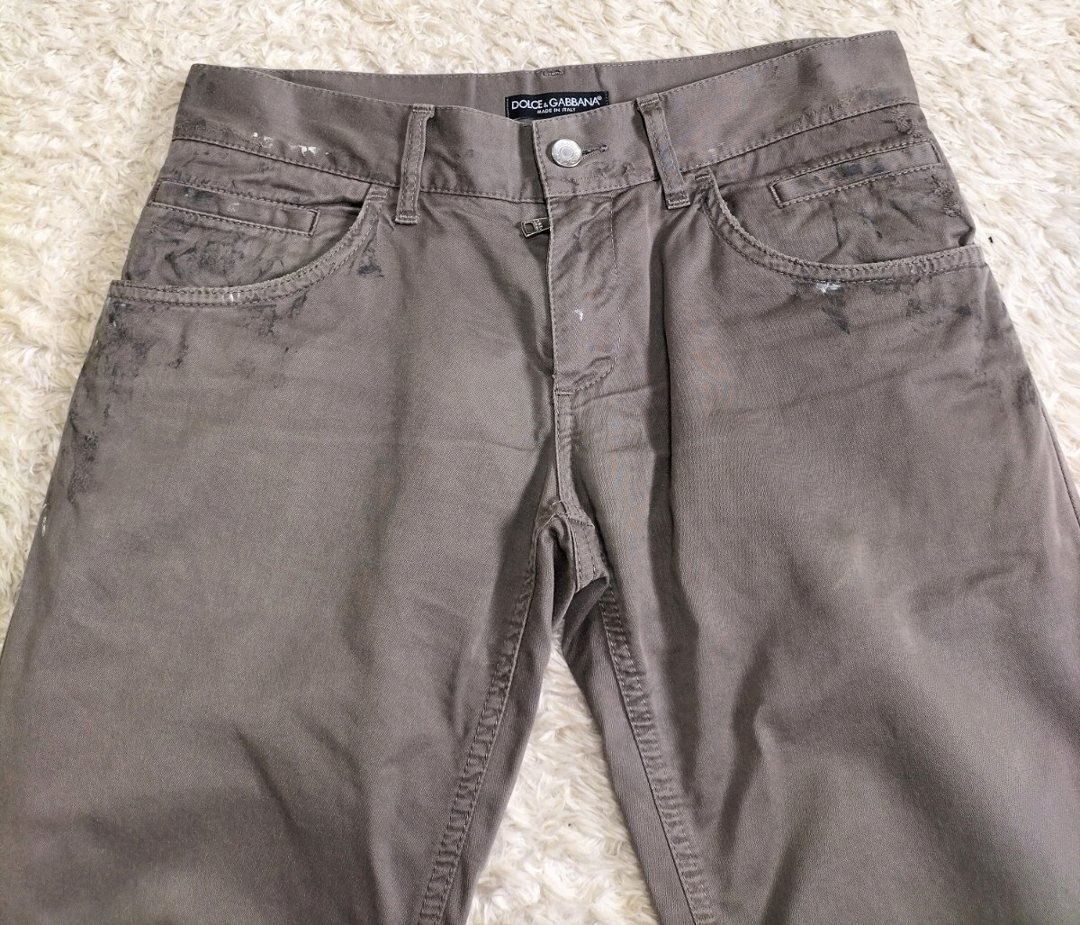 【ロゴプレート】サイズ44 DOLCE&GABBANA ペイント加工トラウザーパンツ/グレーカーキ◆ドルチェアンドガッバーナ (6191)