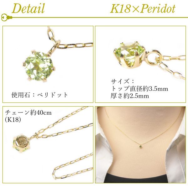 ペリドット ネックレス k18 18金ゴールド レディース 50代 40代 60代 30代 20代 天然石 8月誕生石 18k スキンジュエリー ペンダント