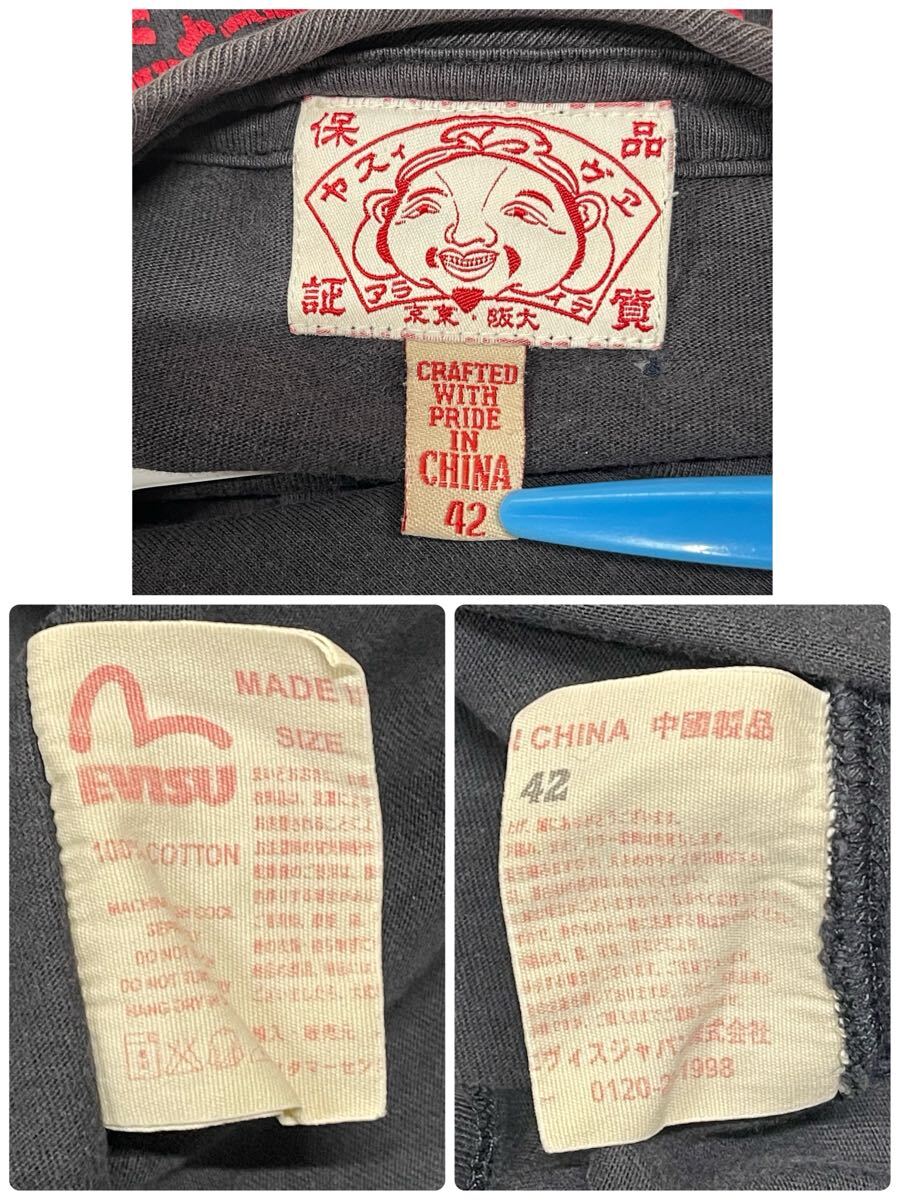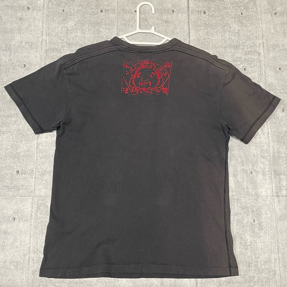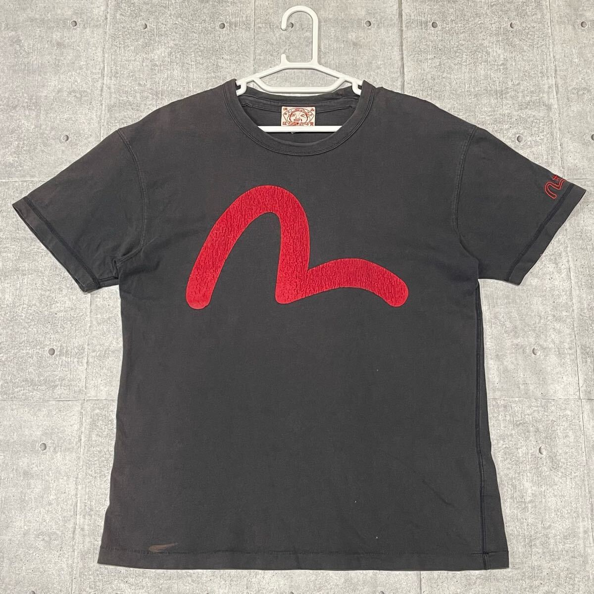 EVISU カモメ プリントロゴ Tシャツ 袖刺繍ロゴ フェード エヴィス  色褪せ プリント剥がれあり 袖シングルステッチ クルーネック 早5659