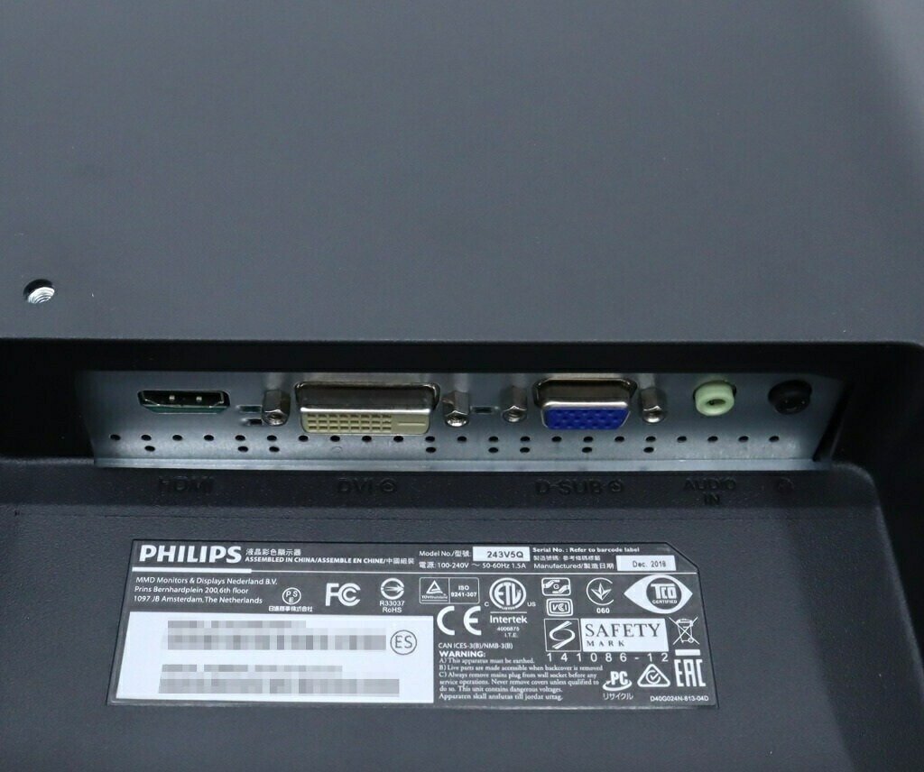 【並品】PHILIPS 243V5Q 23.6インチ非光沢MVAパネル フルHD 1920x1080ドット HDMI/DVI-D/アナログRGB入力
