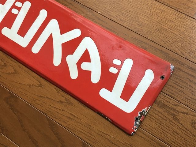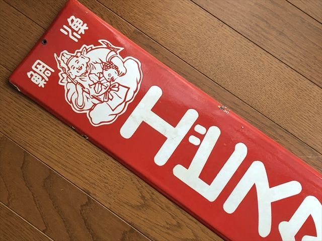 即決【昭和レトロ百貨店】エビスタビ 片面 ホーロー看板 短冊形 当時物 ビンテージ 広告 アンティーク 街並み 商店街 恵比寿 足袋