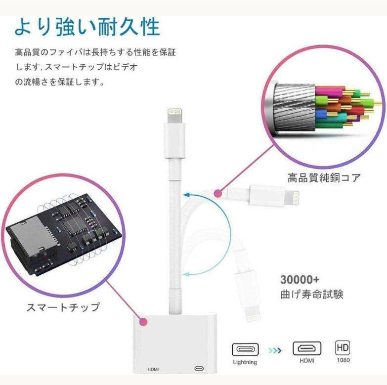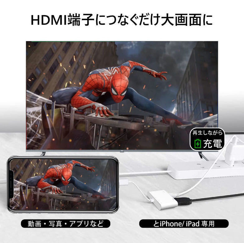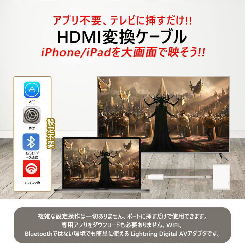 ★最新版★MFI認証 iPhone HDMI 変換アダプタ ライトニング 接続ケーブル アダプタ HDMIケーブル 有線ミラーリング 設定不要(元箱なし)