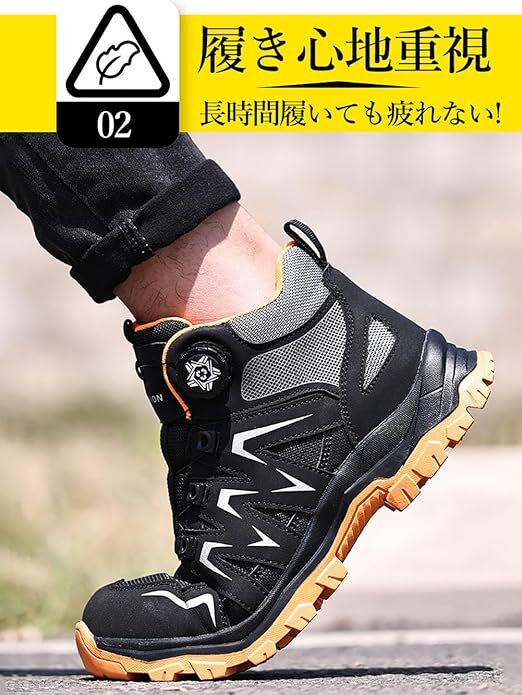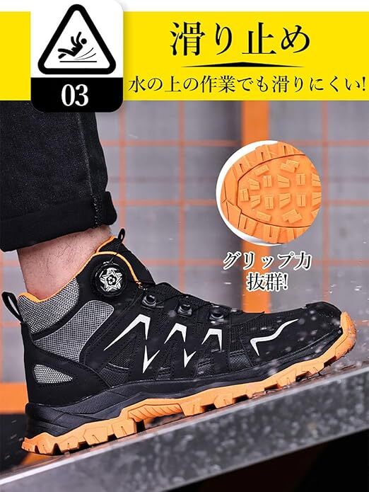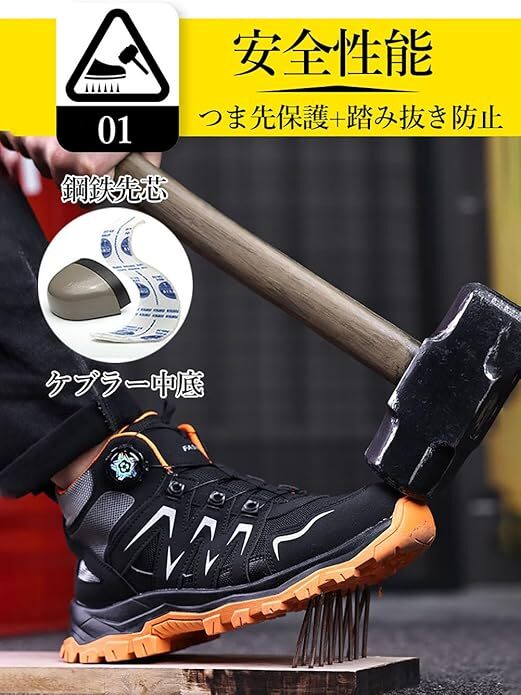 ダイヤル式安全靴 ハイカット 作業靴 通気性 あんぜん靴 軽量 鋼先芯入り 耐滑 耐摩耗 厚底 サイズ:25cm