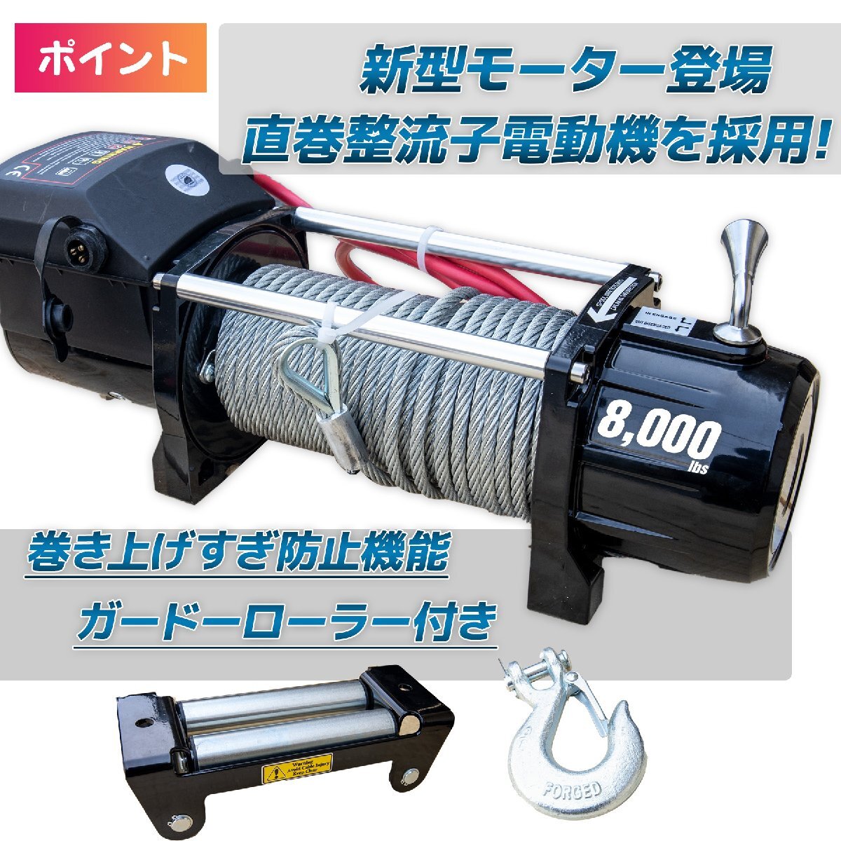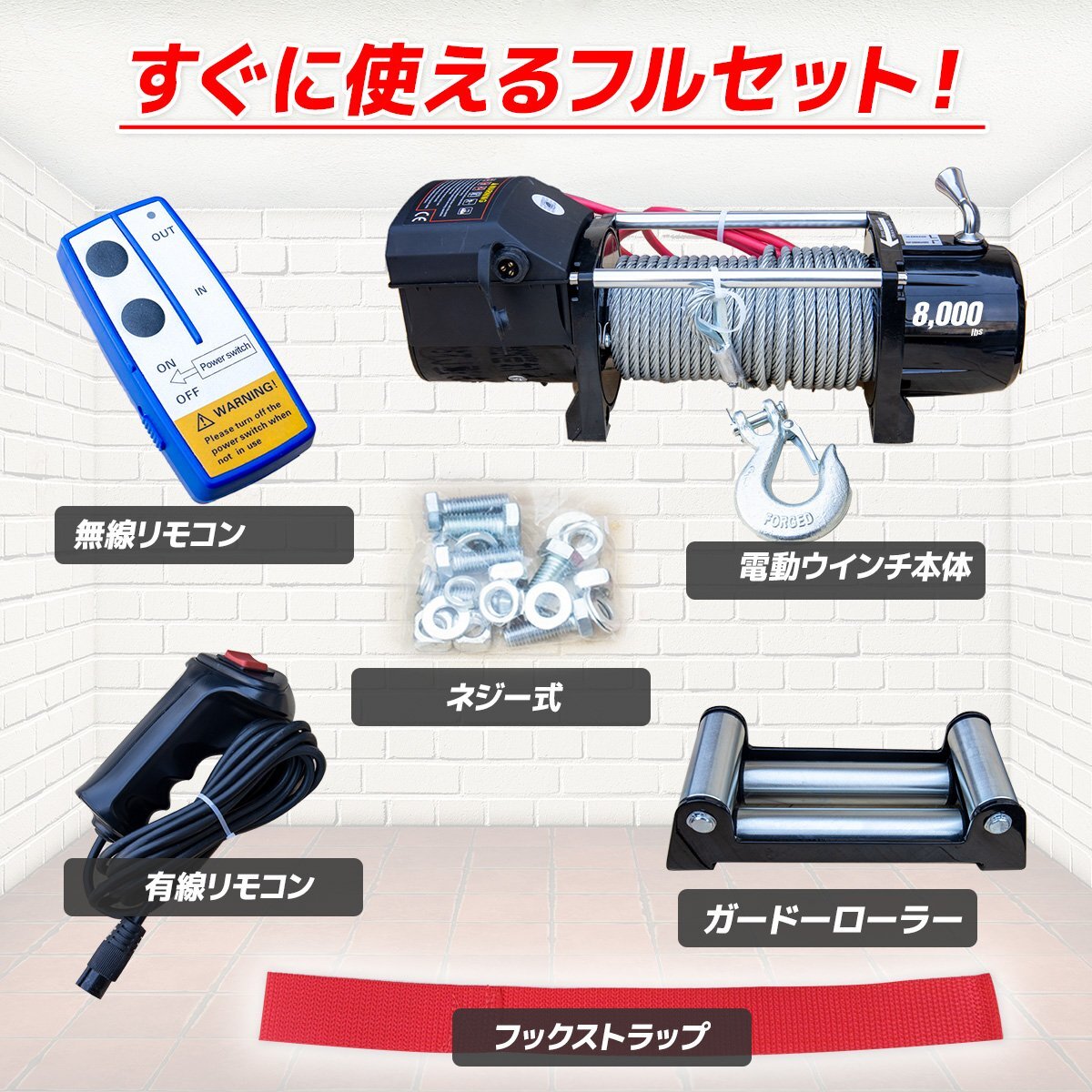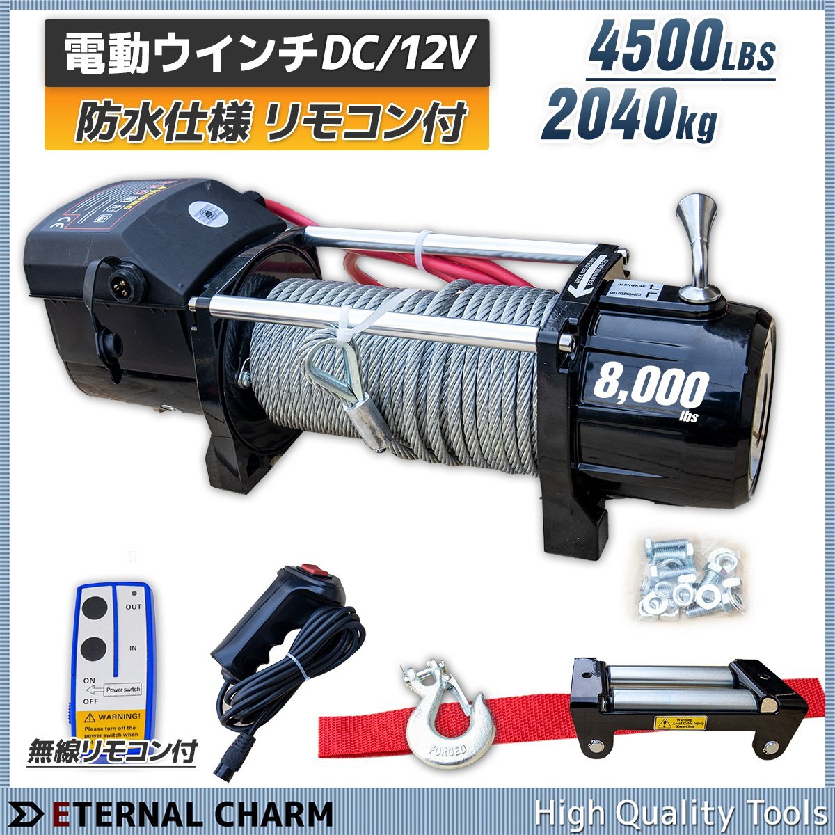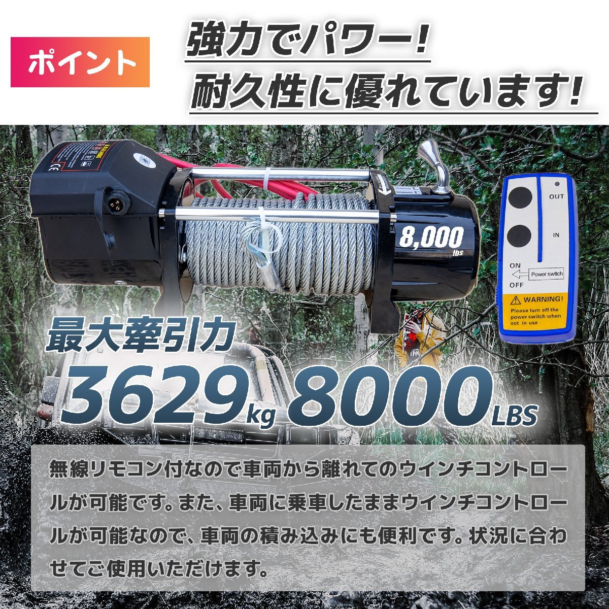 【送料無料】電動ウインチ DC12V 8000LBS(3628kg) 車載用 リモコン付き 最大牽引 防水 強力 荷揚げ 引き上げ 運搬 有線コントローラー