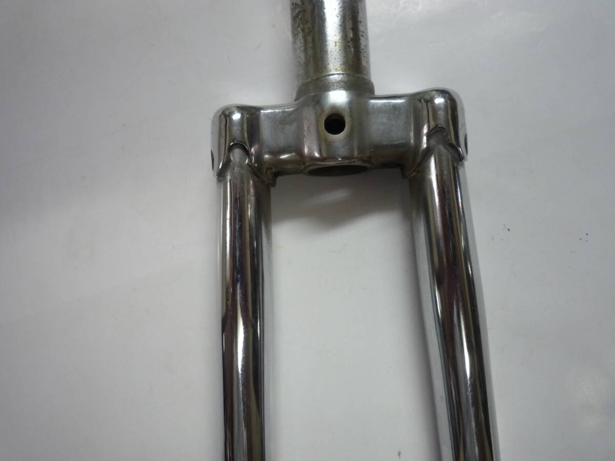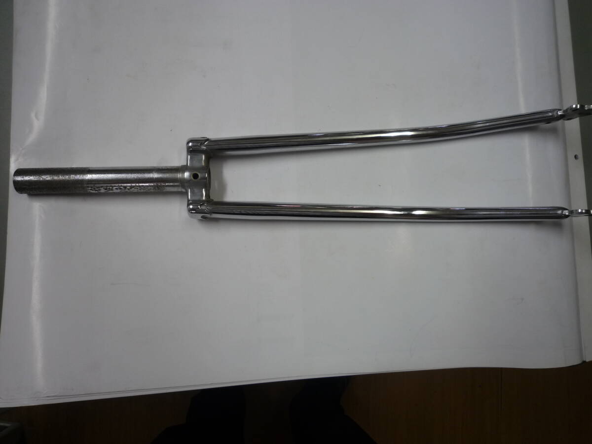 26×13/8メッキフロントフォーク、スーパーカー、ロードマン等、両ダボ付き、首の長さ164mm、ねじ切りは上から70mmです長期保管の為微妙なこすれ傷が有ります、錆は無いです。