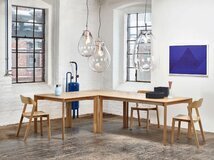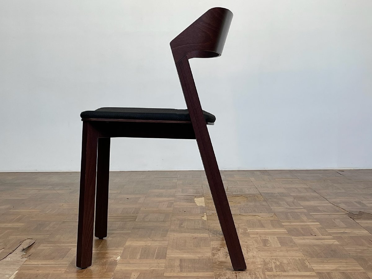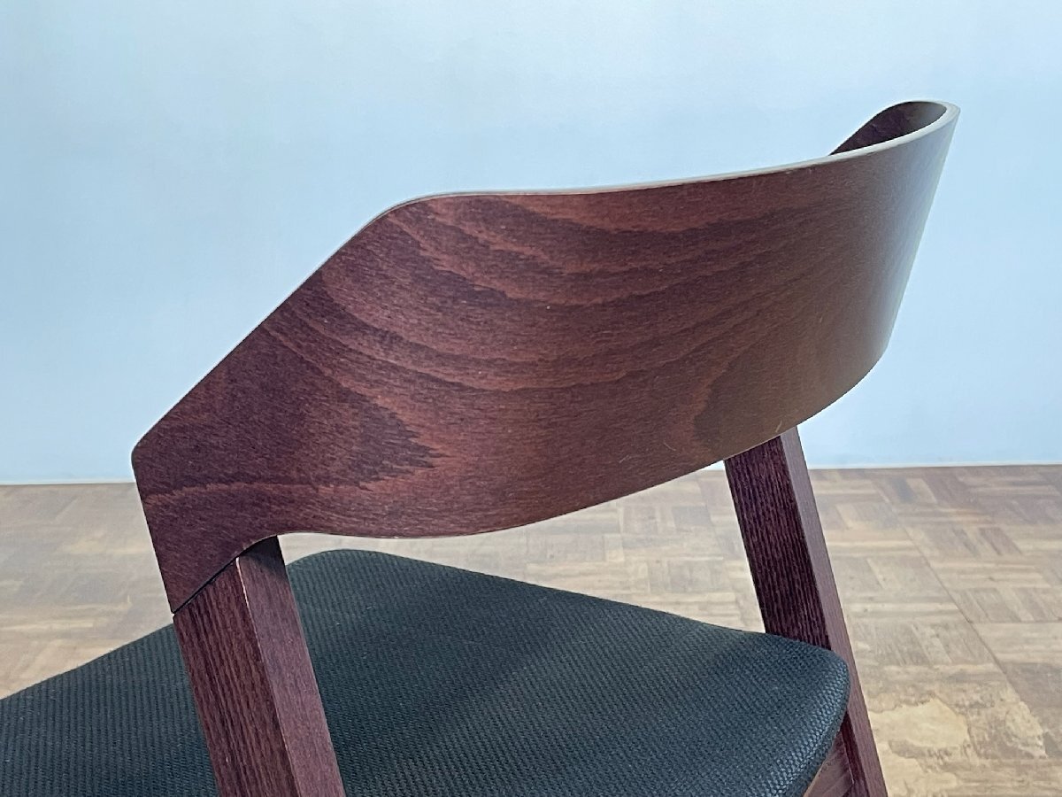 フォーマルなデザインをうっすらとしたプライウッド成形と無垢材のコントラストでの巧みに見立てた、ミニマリズムさと機能性の鮮やかなマッチで TON / トンのモダンデザインのクリエイションにおいて屈指の大セラーとして君臨するサイドアームチェア。TON より。