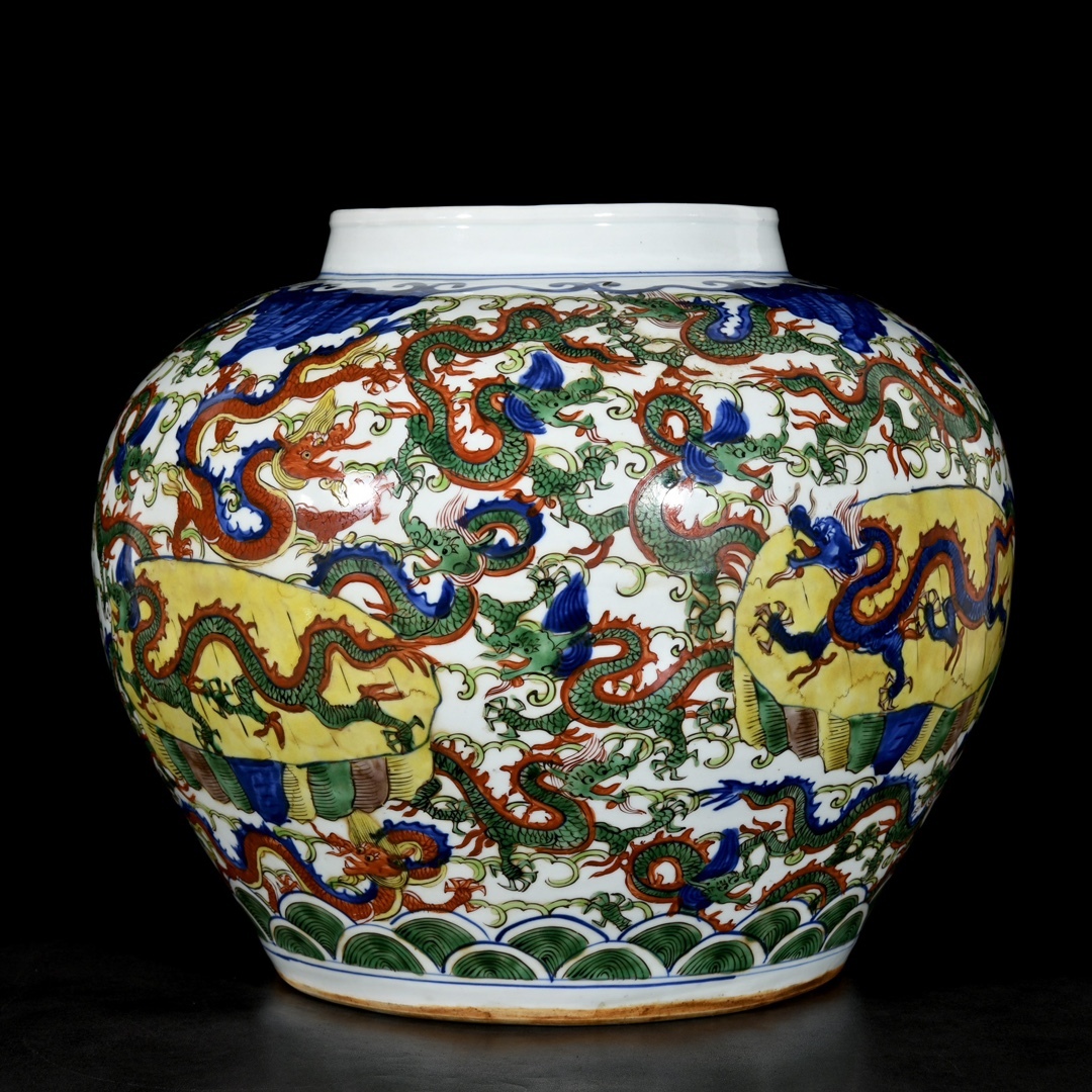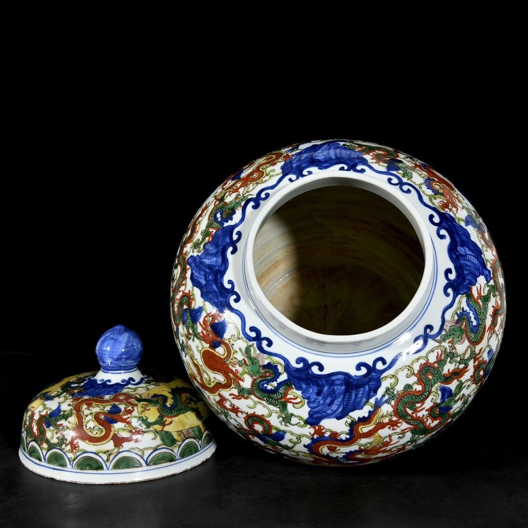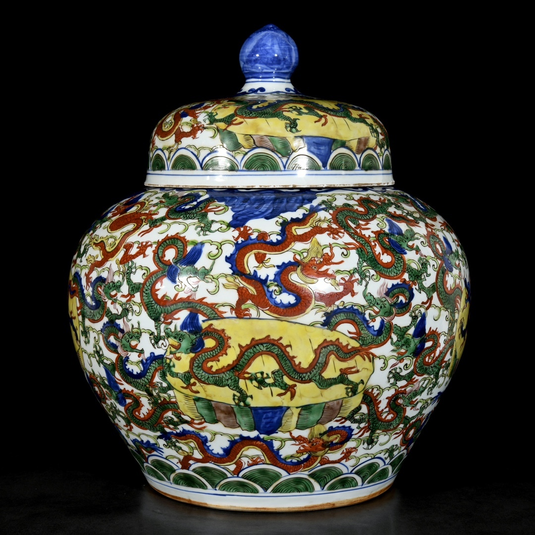 | 中国磁器 陶芸 磁器『明嘉靖斗彩五色百竜紋蓋缶』施釉陶 古代工芸品 陶芸 精美彫 置物 收藏品 | |||