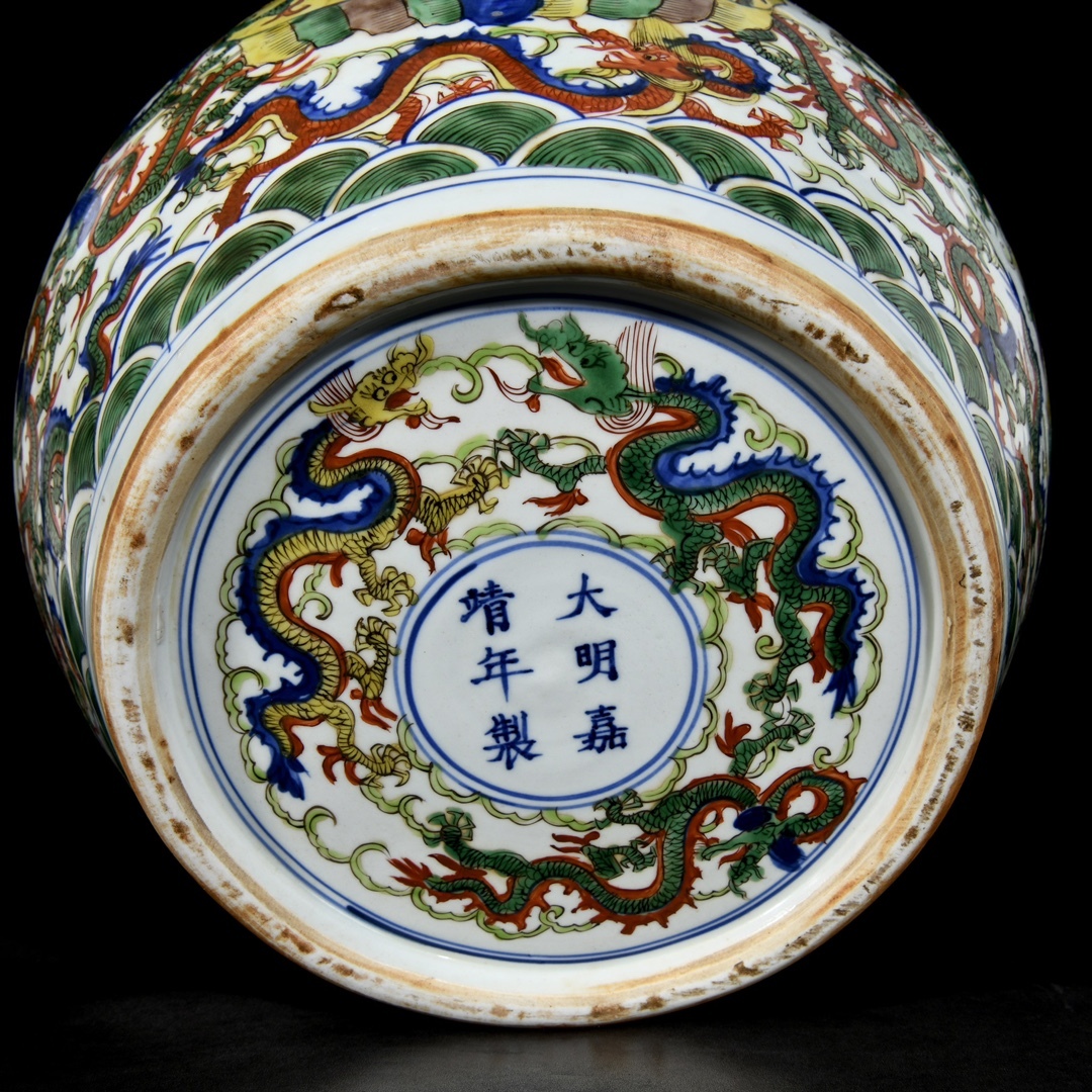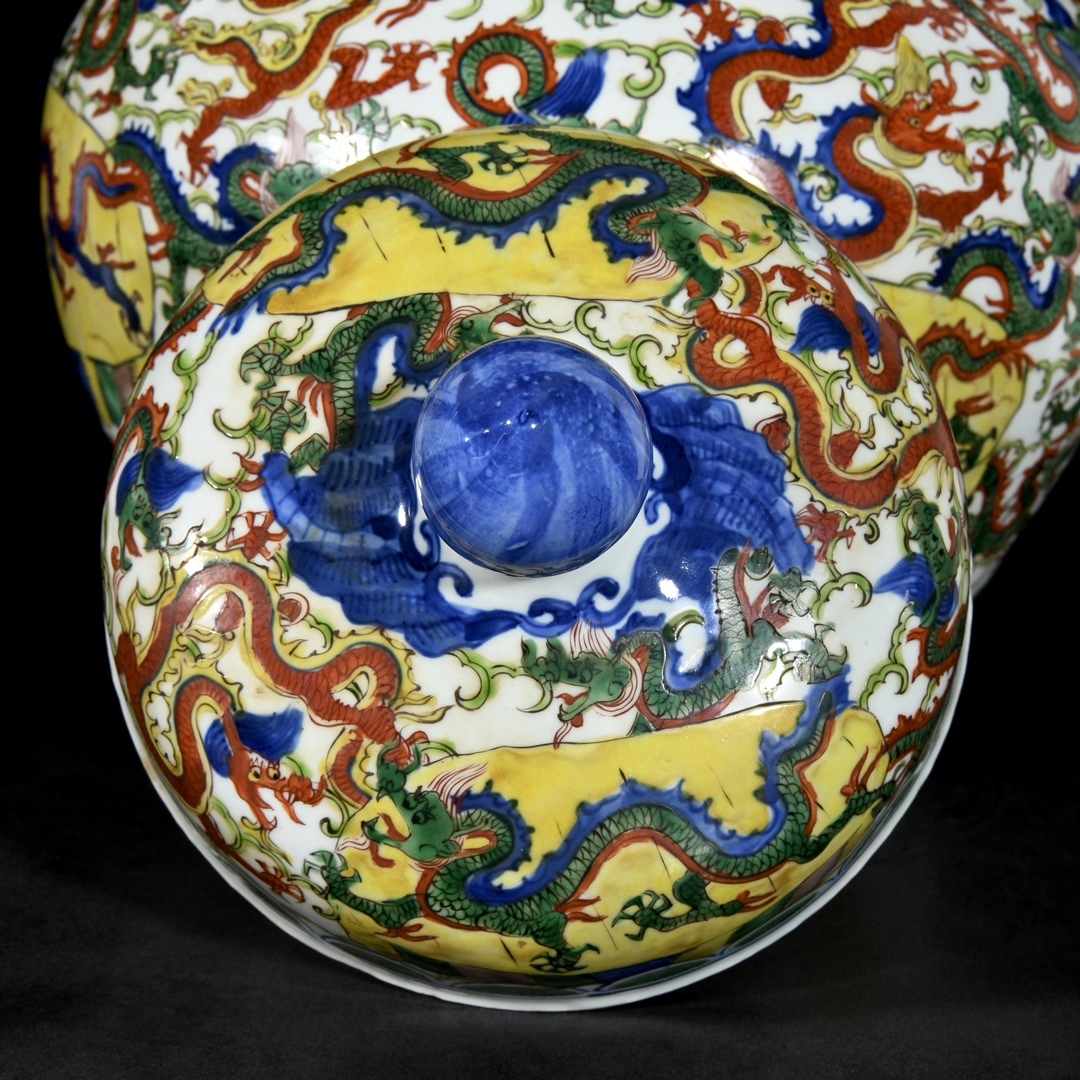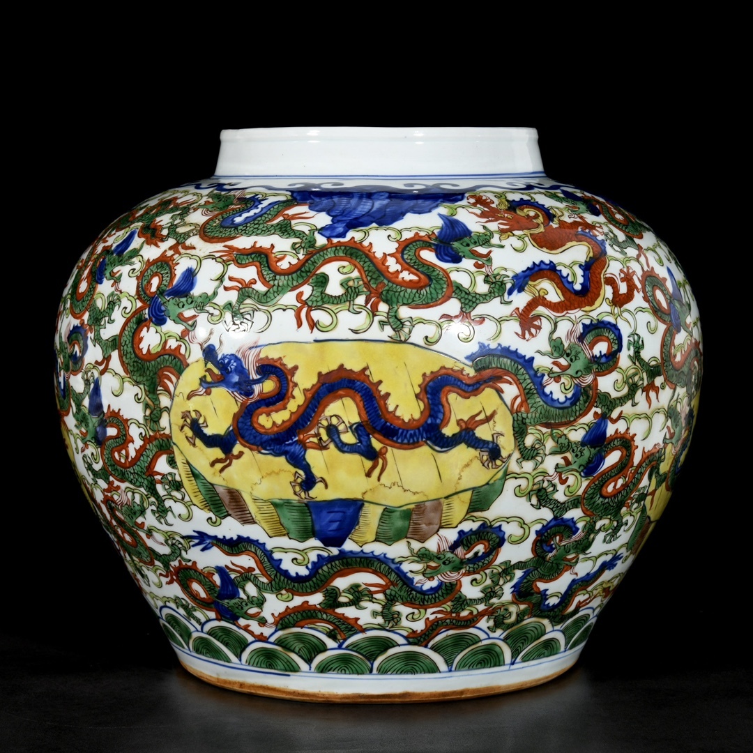 | 中国磁器 陶芸 磁器『明嘉靖斗彩五色百竜紋蓋缶』施釉陶 古代工芸品 陶芸 精美彫 置物 收藏品 | |||
