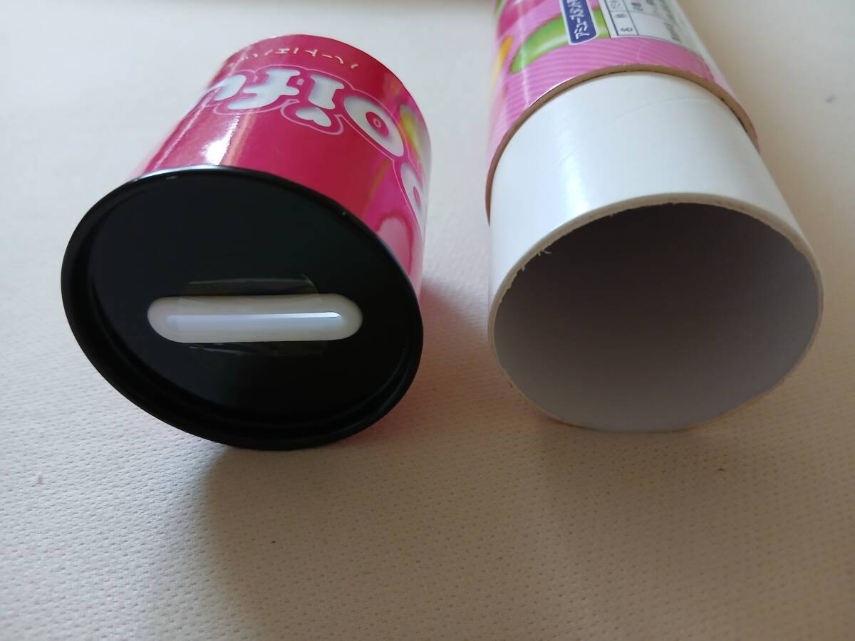 ★大きさは、約長さ45×直径6cmです。クレーンゲームで獲得したお菓子の外箱となりますが、かなり厚手の硬い紙製なので貯金箱、募金箱の他に、丸めた地図や図面を持ち運ぶのにも利用できると思います。
