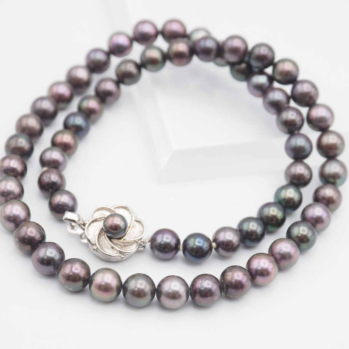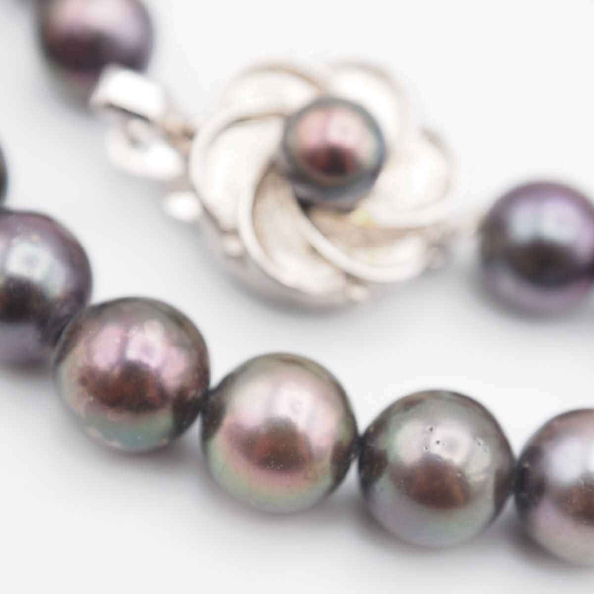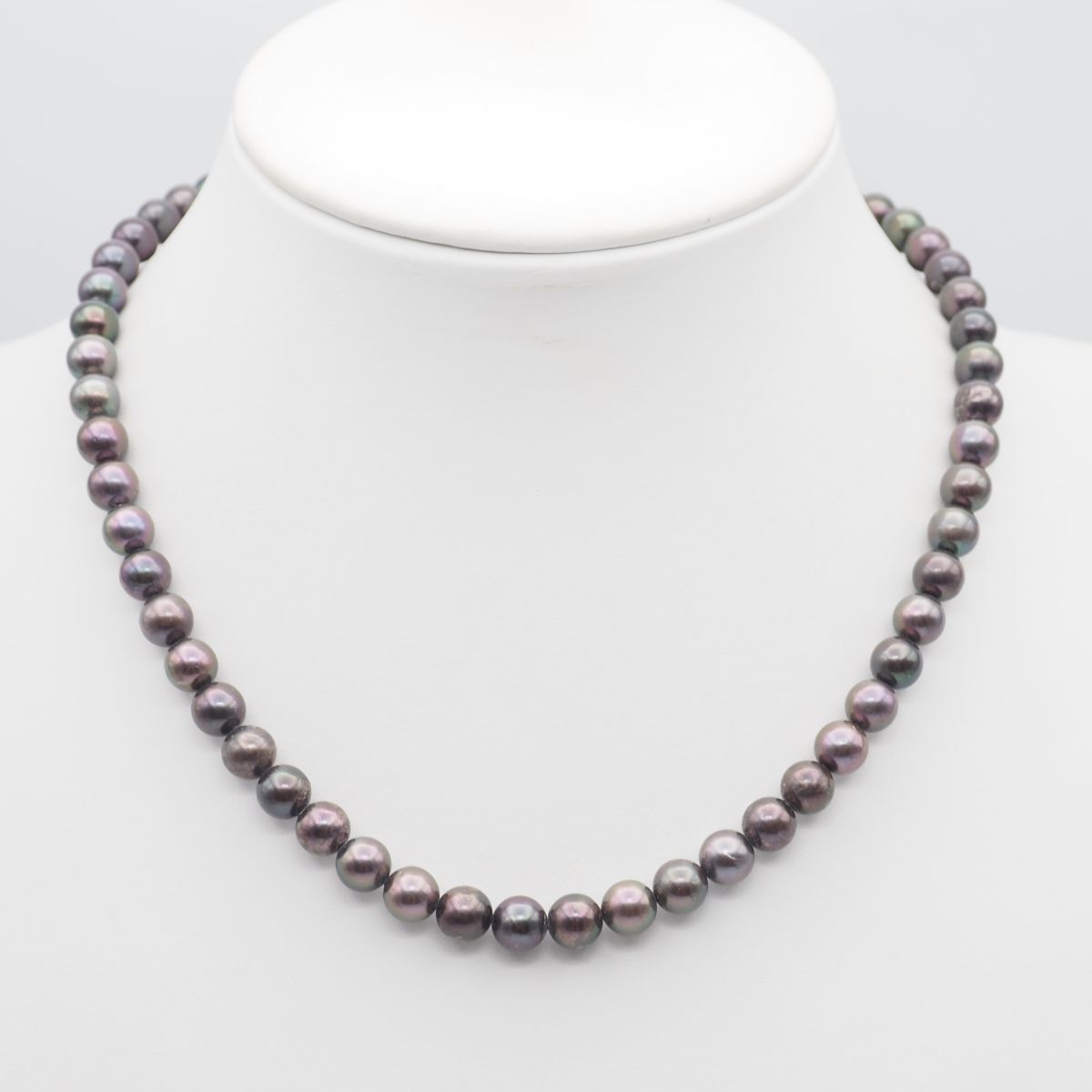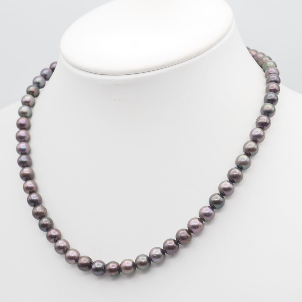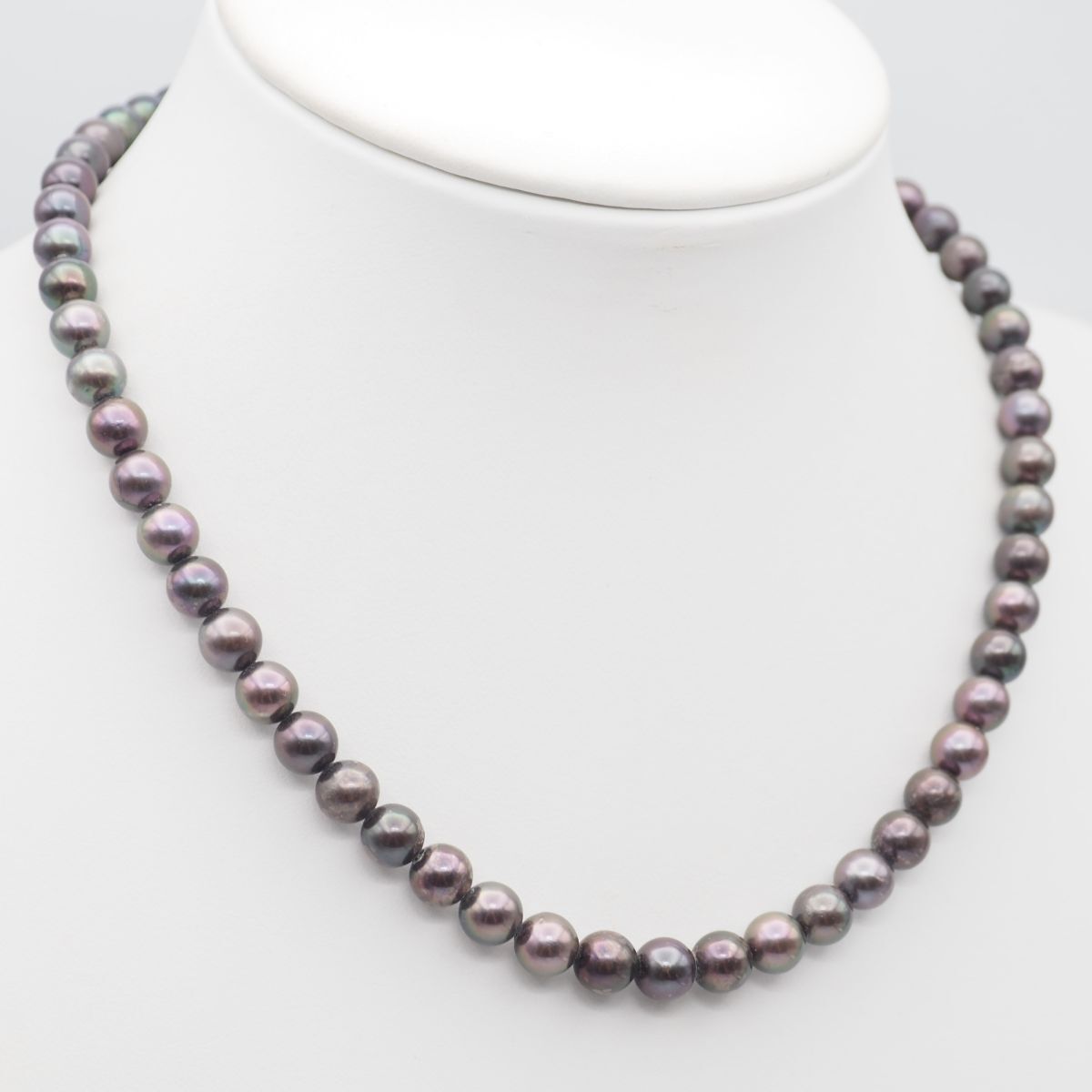 B164 本真珠 7.4mm珠 パール SILVER刻印 ネックレス グレー系カラー デザイン シルバー 6月誕生石