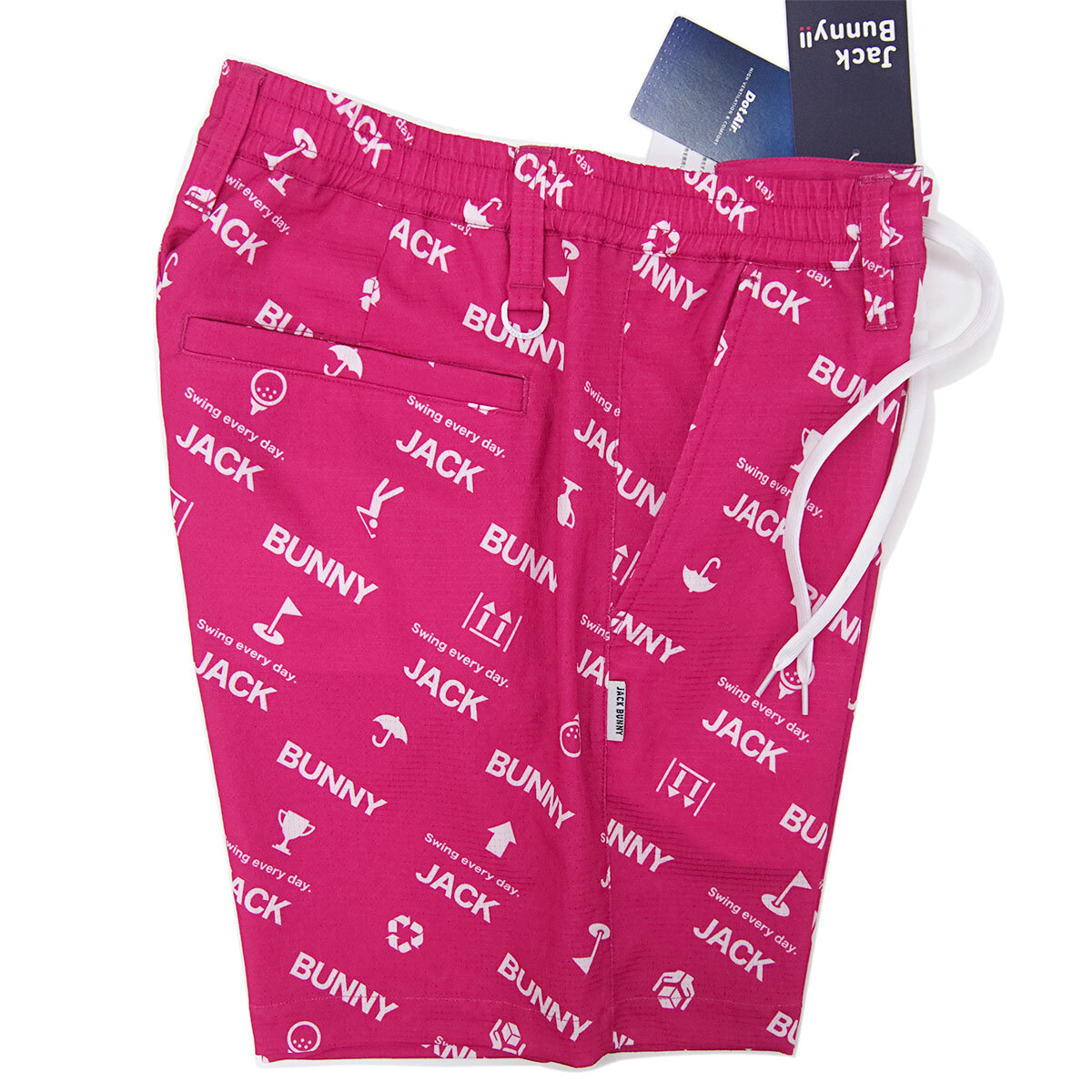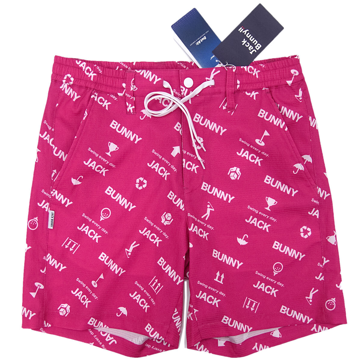 新品・未使用【JACK BUNNY by PEARLY GATES (ジャックバニー バイ パーリーゲイツ) 】ゴルフ 清涼ドットエア ピクトグラム柄 ハーフパンツ(ゴルフパンツ/ショートパンツ)(タグ付き)。 国内正規品。定価は税込14,300円の品。英国リバティアートファブリックの色鮮やかで美しいデザインを採用したハーフパンツ。汗をかいてもムレにくい、高通気、軽量など数々の高機能を兼ね備えた通気孔のある快適素材の【Dot Air/ ドットエア】を使用し夏場に快適。伸縮性に優れたハリのあるストレッチ生地、かつウエストは約12cm伸縮するゴム入りで快適にフィットします。ゴルフは勿論、カジュアルファッションにもおすすめ。早々と完売となった、とても人気の高い品でお探しの方もいらっしゃるかと思います。色鮮やかなゴルフウェアをお探しの方には特にお薦めです。毎回ご好評頂いた品ですがこちらのサイズは【最後の一品】となりました。どうぞお見逃しなく。(国内の大手スポーツショップやゴルフショップ、百貨店等で販売される国内正規品となります)