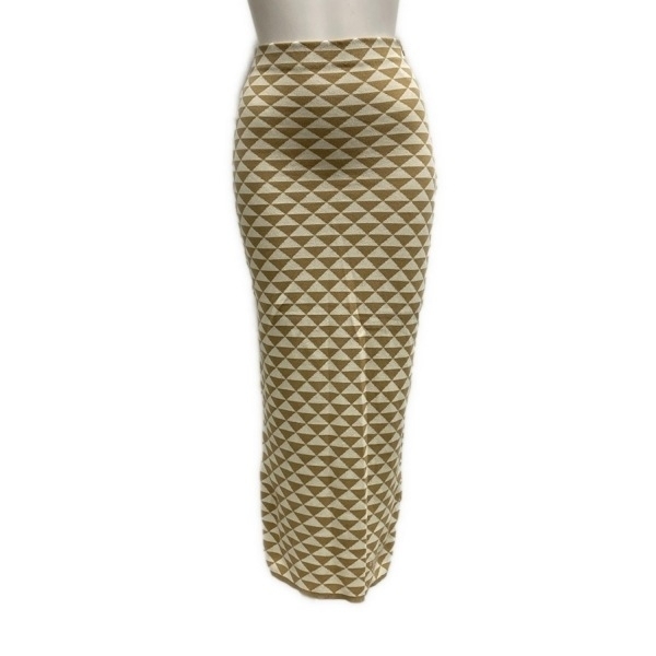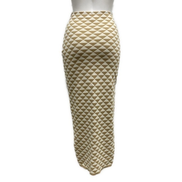 プラダ PRADA ロングスカート サイズ36 S 21420 S231 12QA - コットン ベージュ×白 レディース 36/タイトスカート/ニット/コットン 美品