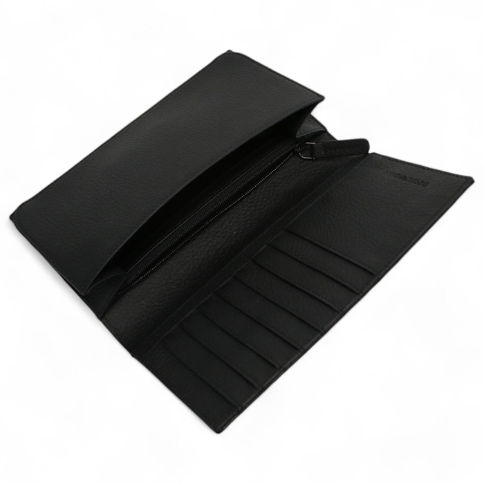 こちらのエンポリオアルマーニの2つ折り長財布は、シックなブラックカラーが特徴で、どんなシーンにもフィットするアイテムです。ビジネスシーンからカジュアルな日常まで、幅広く活躍すること間違いなしの一品です。