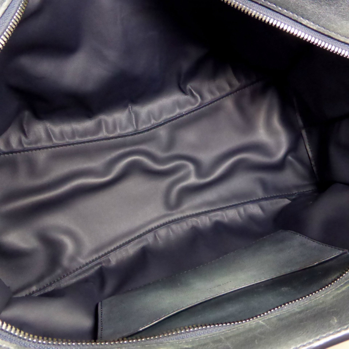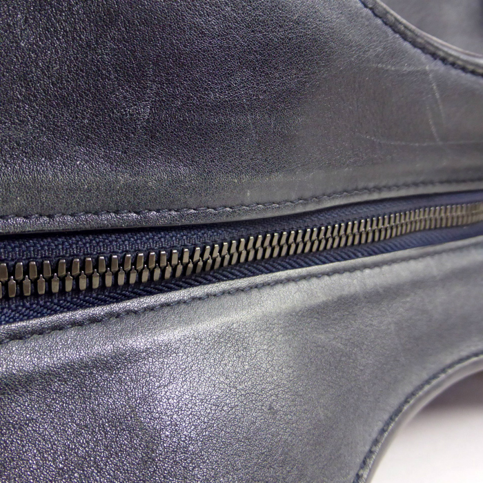 | レザーにスレや内側にシワ、一部バニッシュハゲが見受けられます。またこちらのお品、ロゴキーチャーム、ラウンドカラビナ欠品およびヴィンテージ加工が施されているお品となります。 |