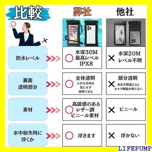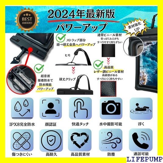 【2024年最新版・高級感UP&浮く防水スマホケース】◎ビニール生地から→高品質レザー調ビニールに進化 ◎浮くタイプだから紛失時も安心 ◎スマホ防水ケースに入れて高画質写真・動画撮影可能 ◎タッチ操作、通話、顔認証可能。◎携帯を入れるだけでなく、カギ、カード、現金、小銭なども収納でき貴重品管理もできます。◎防菌対策にも ◎首掛けストラップ取り付け部は紐ではなくクリップ金具取付により頑丈になっています。個数:2個 カラー:ブラック