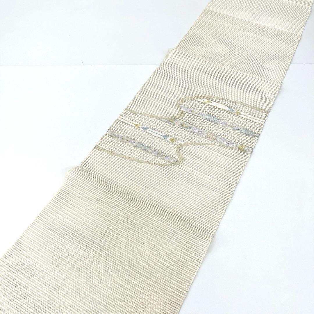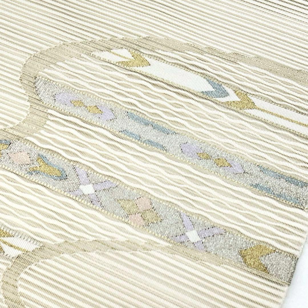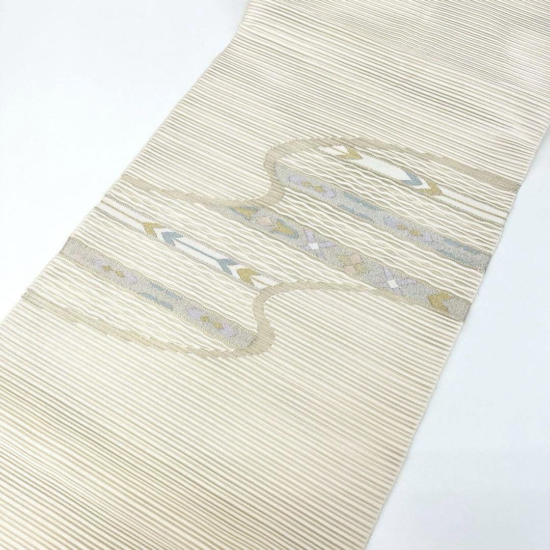 生成り地に、透け感を活かした大胆な抽象柄がデザインされた一本。