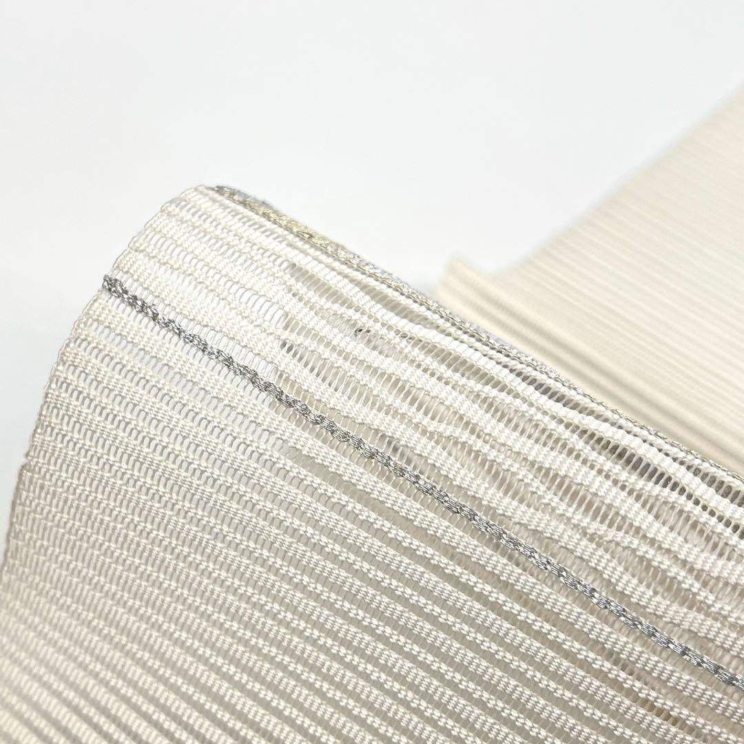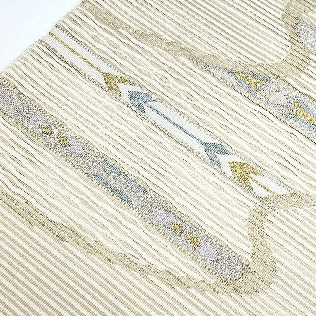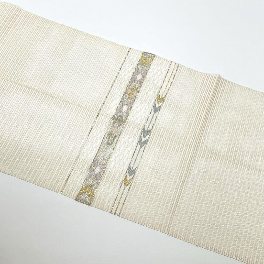 生成り地に、透け感を活かした大胆な抽象柄がデザインされた一本。