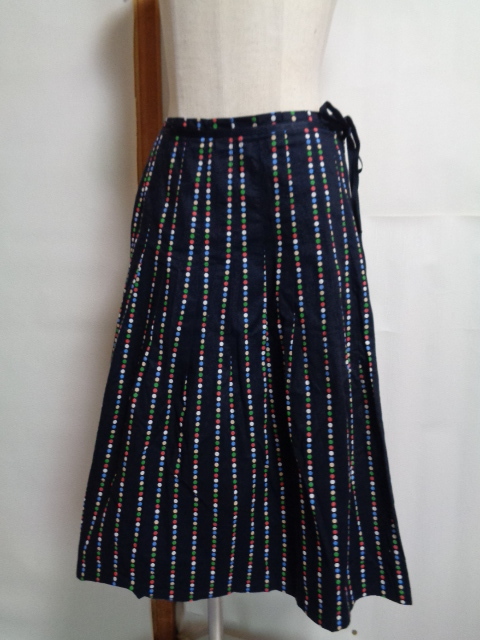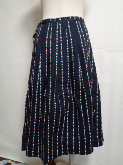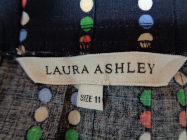 美品★ローラアシュレイ*11*紺*綿スカート*フレアースカート*ネイビー*夏スカート*ドット柄*水玉