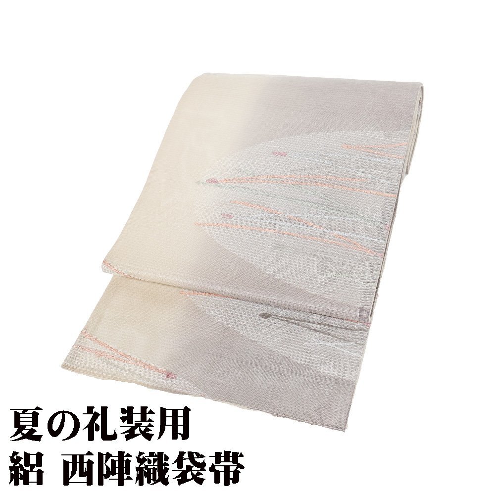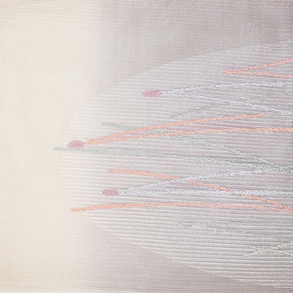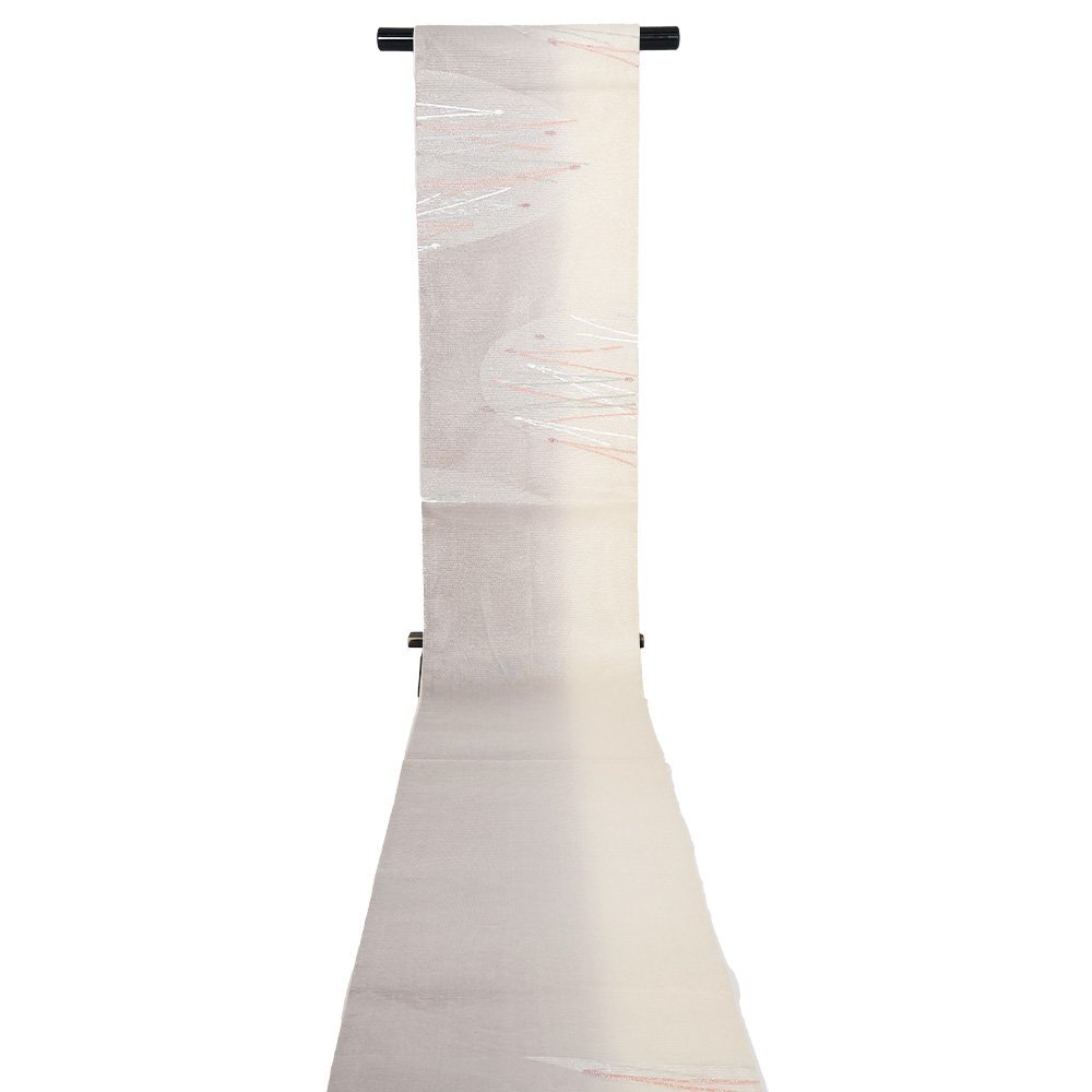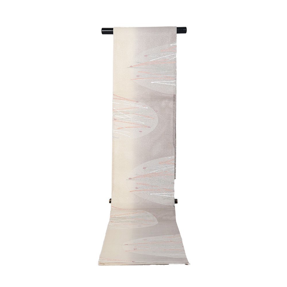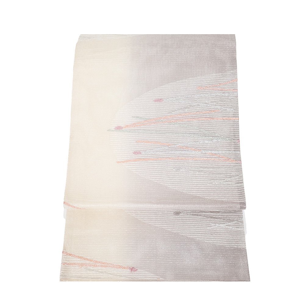 | 絽 西陣織袋帯 グレー・クリーム・金・銀地 縫い取り・松葉 仕立て上がり | |