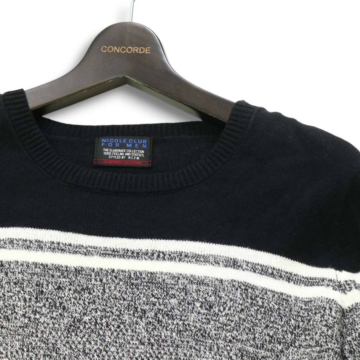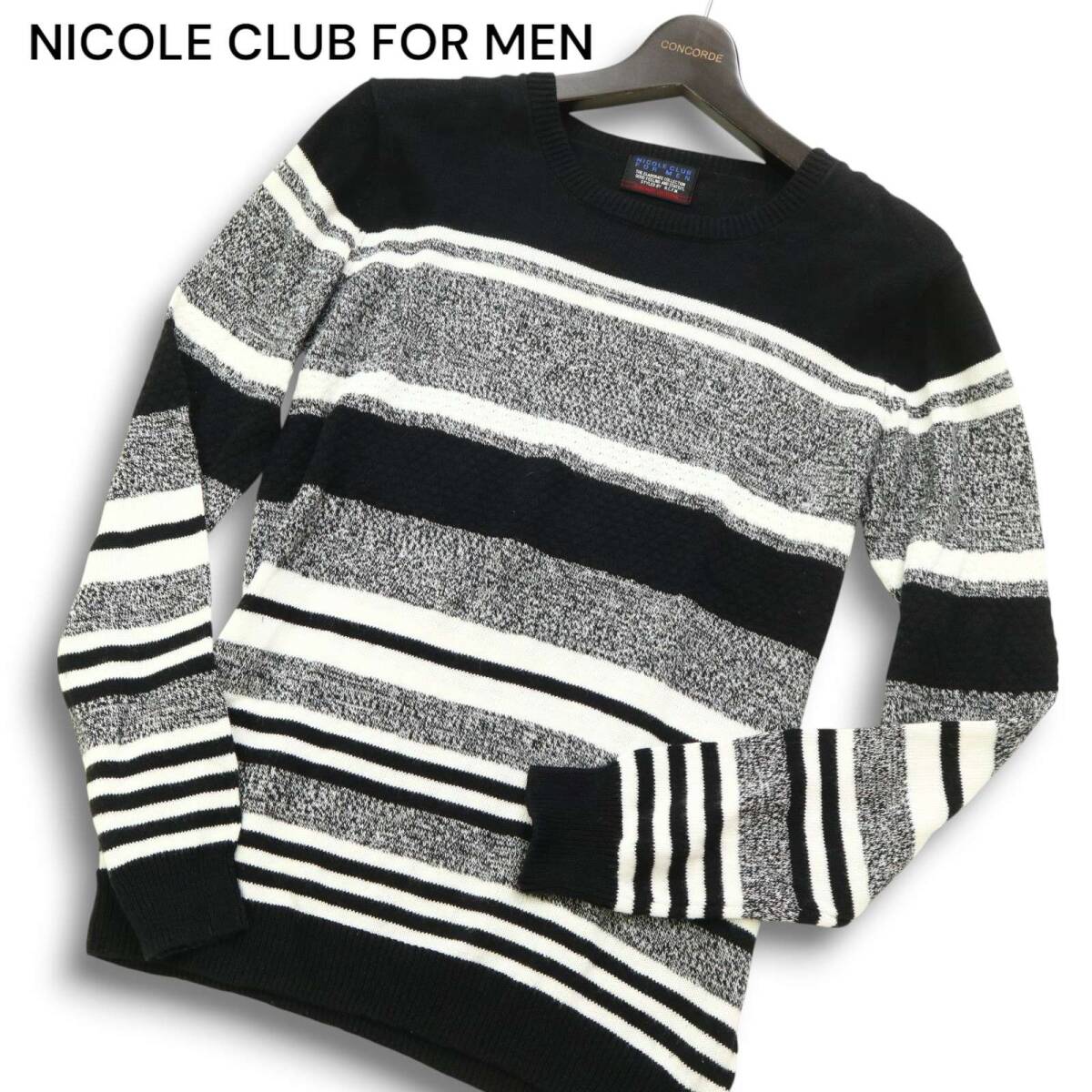 NICOLE CLUB FOR MEN ニコルクラブ フォーメン 春夏 麻 リネン★ マルチ ボーダー セーター ニット Sz.46 メンズ