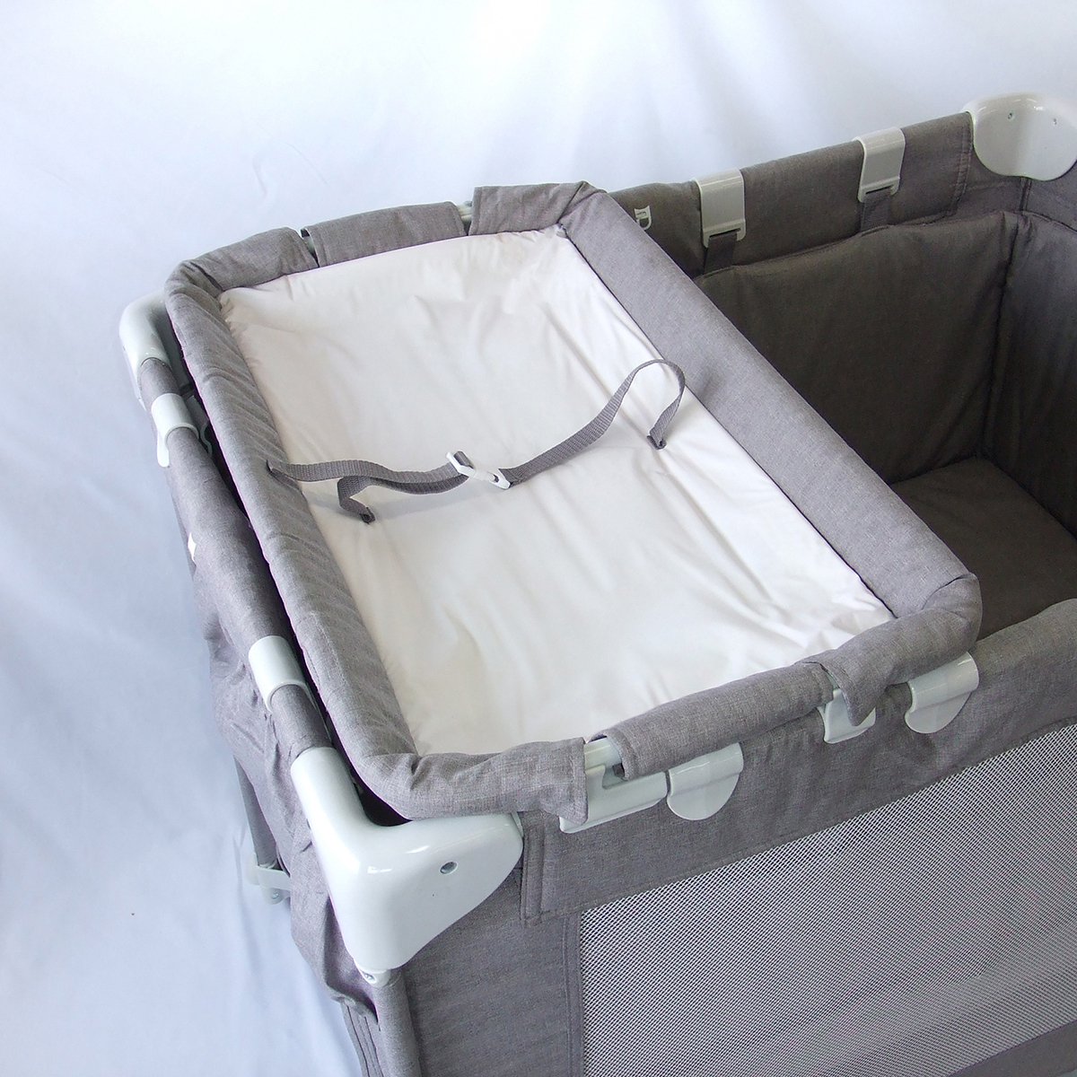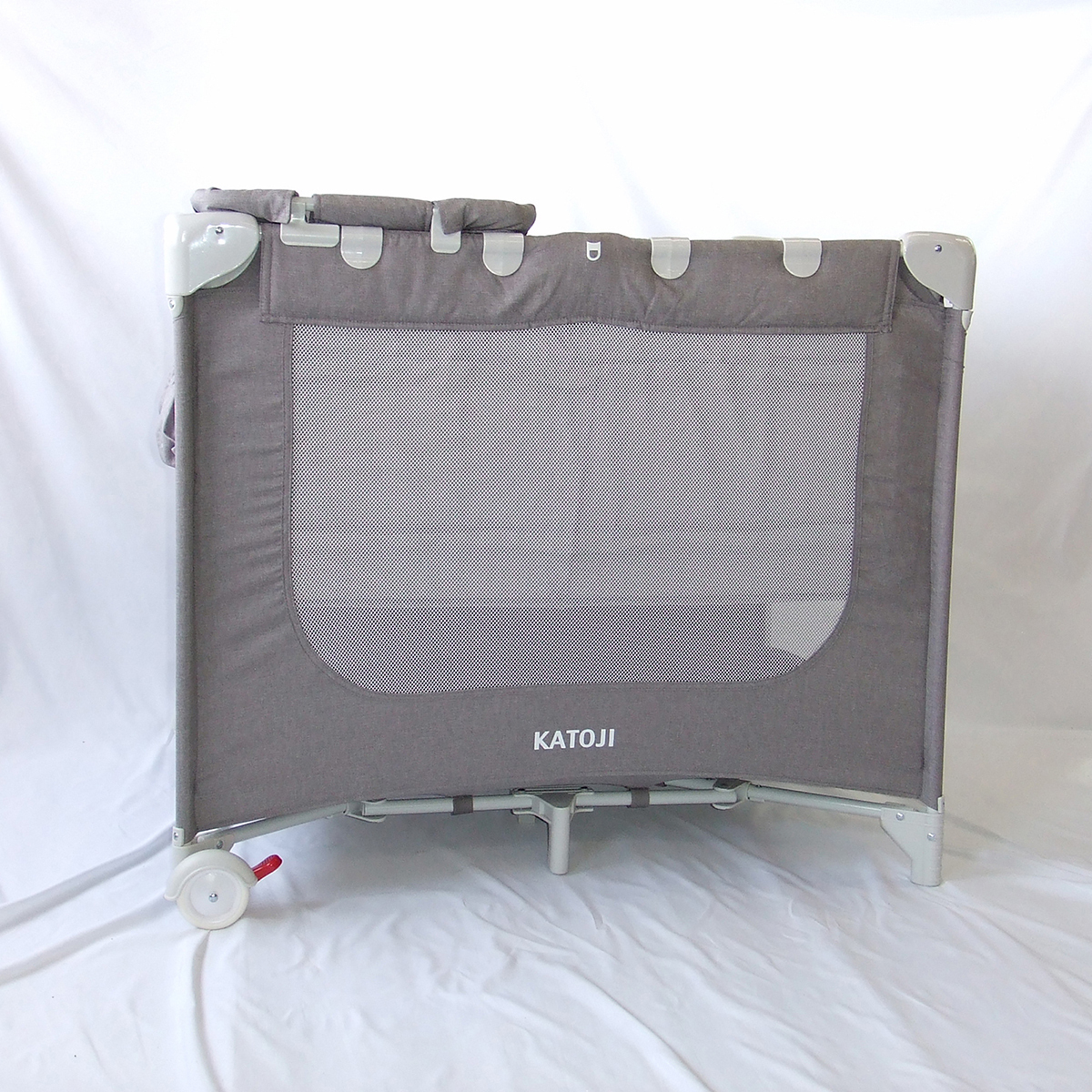 カトージのポータブルベビーベッド おむつ替えテーブル付です。 折り畳み式ですので、使わなくなったら収納するのもとても楽です。 【製品仕様】現状優先 ・使用対象年齢:ベビーベッドとして:新生児~つかまり立ちできるまで(5ヶ月頃) プレイヤードとして:生後5ヶ月~24ヶ月、体重10kg以下 おむつ替えテーブル:生後6ヶ月もしくは体重8kgまで ・サイズ: 本体:使用時:W100×D77×H83.5cm、収納時:W25×D23.5×H83.5cm、内寸:60×90cm おむつ替えテーブル:W51×D71cm ・重量: 本体:14.3kg おむつ替えテーブル:1.9kg ・ベビー布団はミニベッド用(600×900mm)をご使用下さい。 ・製品安全協会乳幼児用ベッドSG合格品 |