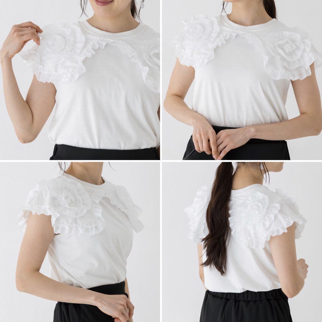 衿部分に上品なフラワーモチーフデザインが装飾されており、一枚で一気に主役級