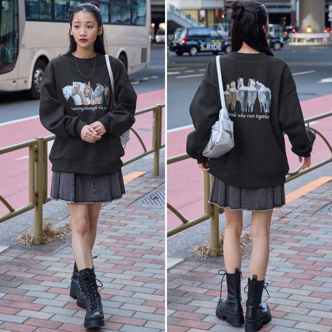 ■シンプルコーデに愛される主役アイテム。デニムやスウェットパンツなどカジュアルなボトムスと合わせるだけで、愛らしくもこなれたスタイルに仕上がります。ロングスカートやショートパンツと合わせたミックススタイルもおすすめ。ユニセックスで着用できるデザインなので、友達やパートナーとペアコーデにも◎