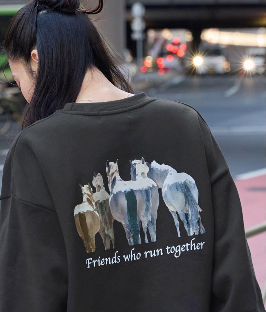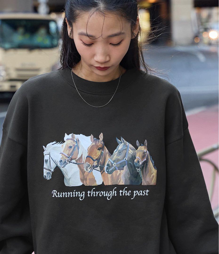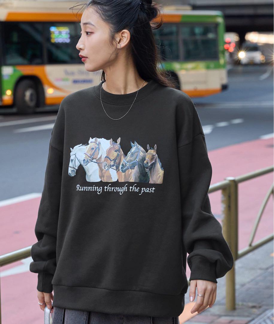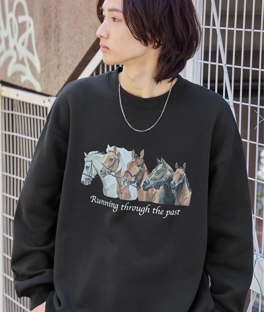 ヴィンテージライクホース&カウボーイデザインオーバーサイズスウェット