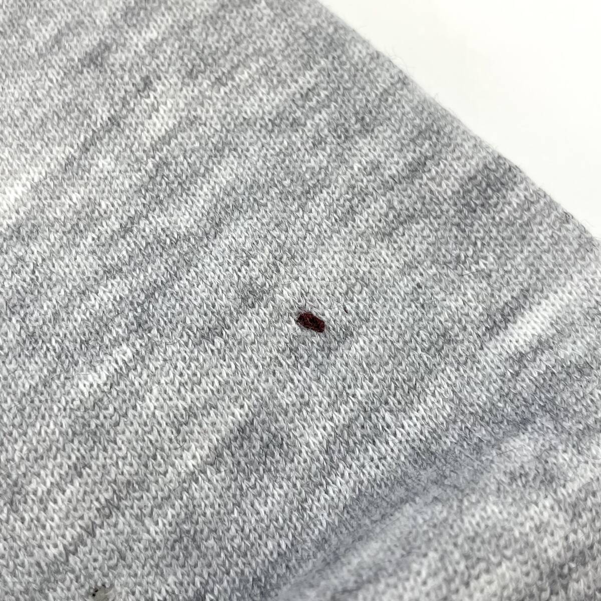 使用感、ボディや袖や袖リブに薄シミ・薄汚れ、目立ちませんが背中に小傷リペアあり。