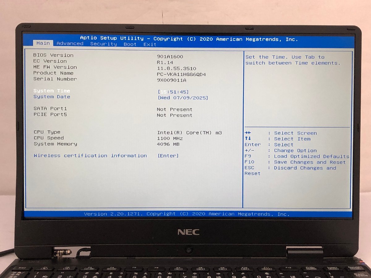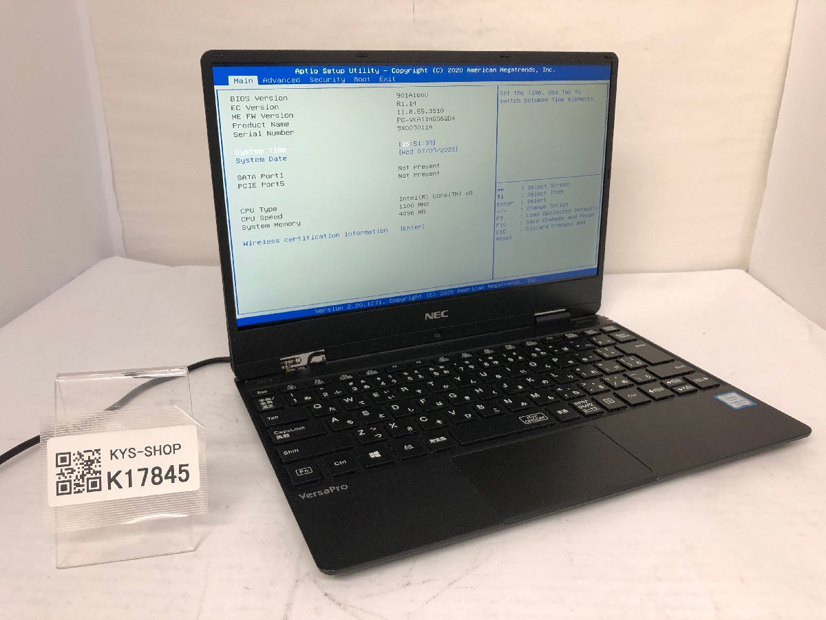 ジャンク/ NEC PC-VKA11HGG6QD4 Intel Core m3-8100Y メモリ4.1GB ストレージ無し 【K17845】