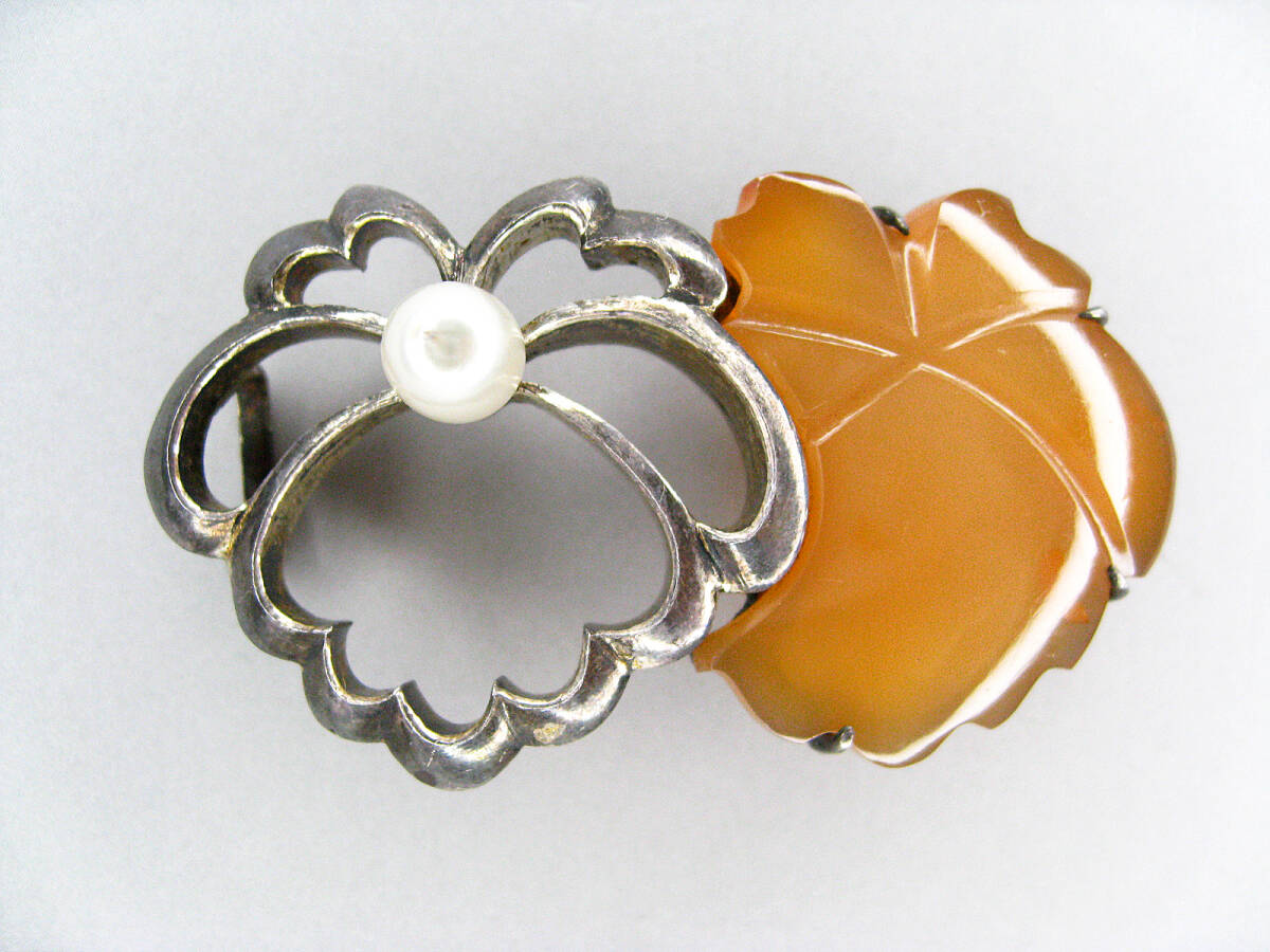 ご覧いただき誠にありがとうございます 鼈甲帯留 蔦パール入 透かし です。