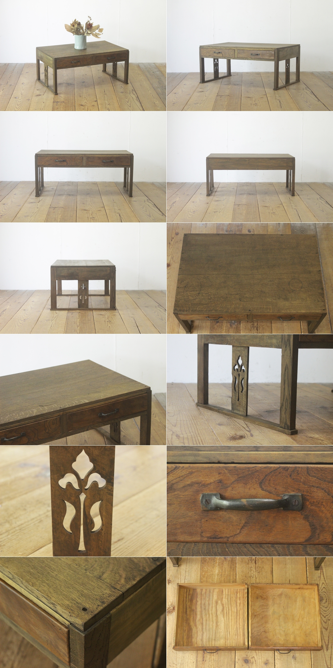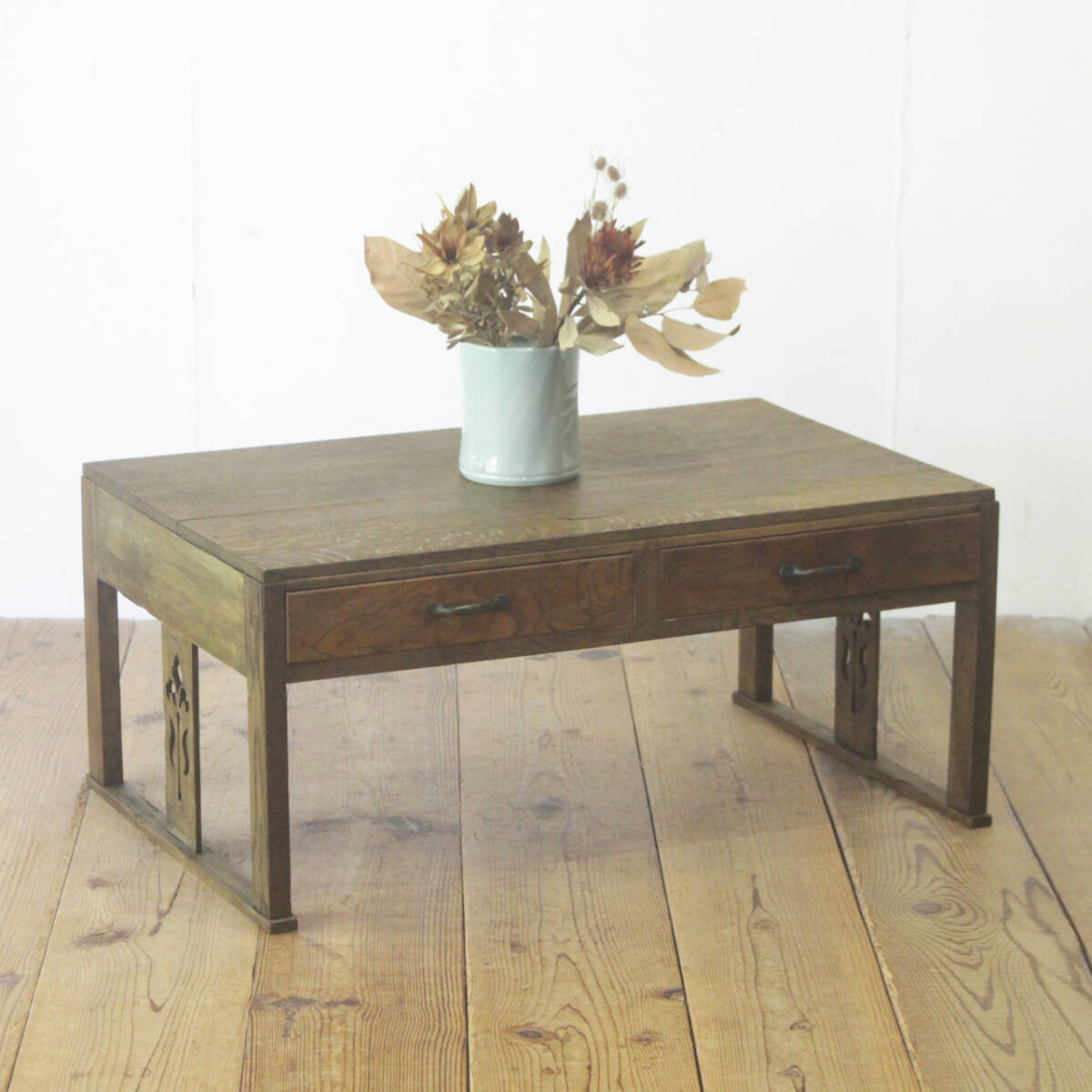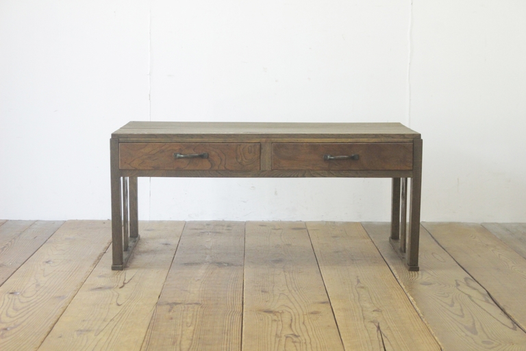 レトロ 文机 ローテーブル 座卓 無垢材 引き出し 抽斗 2杯 花台 展示台 ヴィンテージ