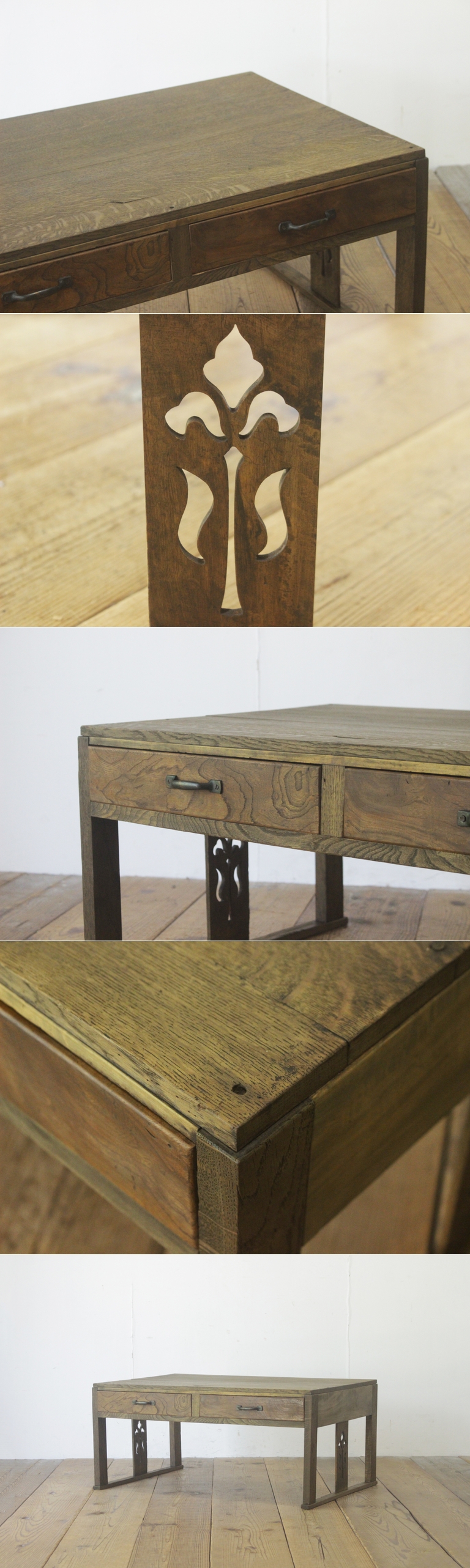 レトロ 文机 ローテーブル 座卓 無垢材 引き出し 抽斗 2杯 花台 展示台 ヴィンテージ/昭和大正古道具アンティーク/PET27197