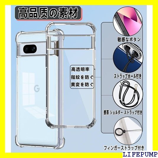Ausrann Google Pixel 7a ケース Pixel7a ケース グーグル ピクセル7a カバー ショルダー ストラップ2枚付き 肩がけ 首掛け 紐付き ストラップホール付き 薄型 軽量 衝撃吸収 シリコン TPUバンパー + 黄変防止 透明 PC カバ- 米軍MIL規格 ワイヤレス充電対応 スマホケースPixel 7a クリア 839