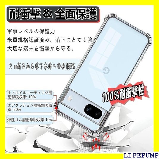 【米軍MIL規格の取得 & 衝撃吸収】その耐衝撃性能は第三者機関の試験による米軍MIL規格をクリアするほど高いことが証明されております。Pixel7a ケースの四隅部分に衝撃吸収テクノロジーを採用し、これにより角からの衝撃を受けてもその隙間がクッションの様に本体への衝撃を吸収します。万が一スマホを落としてしまった場合でも、落下時のダメージを最小限に抑えることが可能となっており。