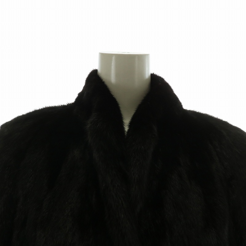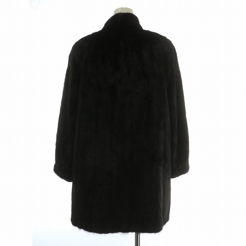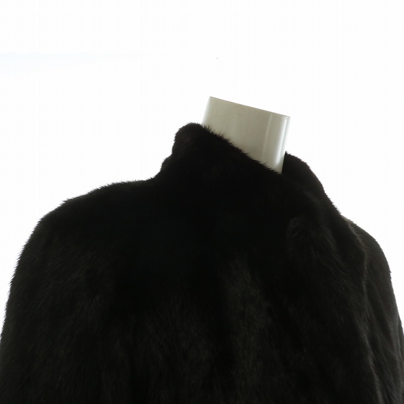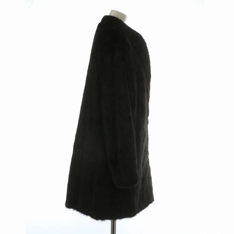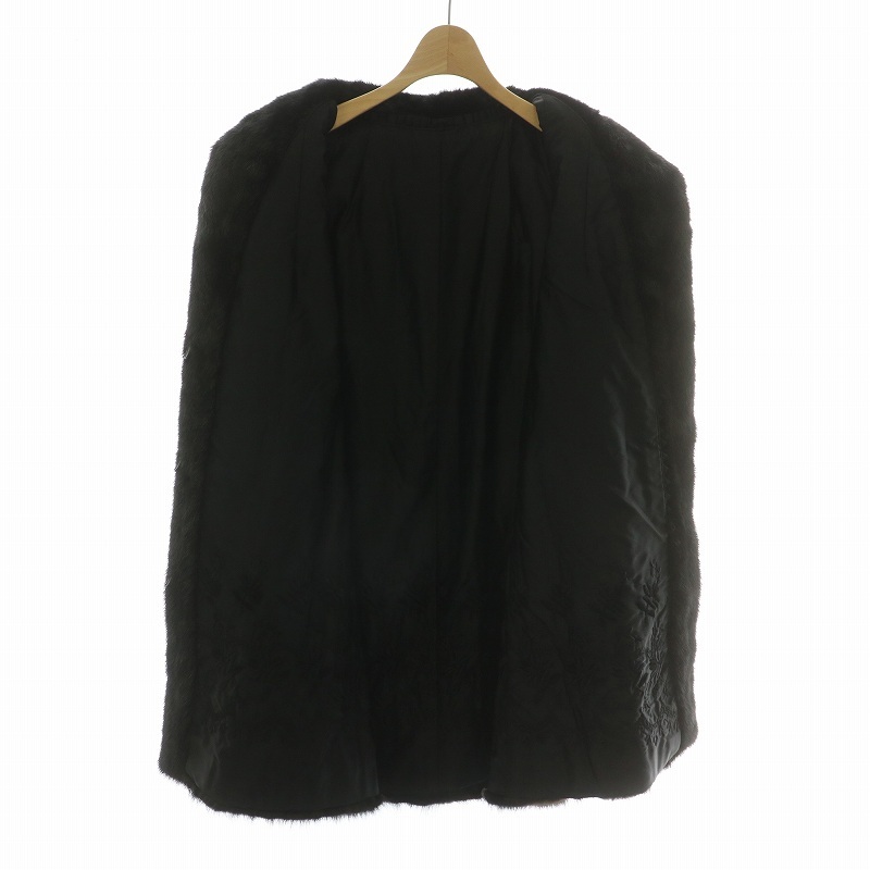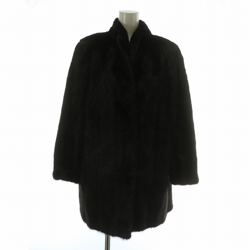 ノーブランド ファーコート アウター 毛皮 ミンク ミドル 肩パッド 裏地刺繍 11 L 茶色 ブラウン /XZ ■GY18 レディース