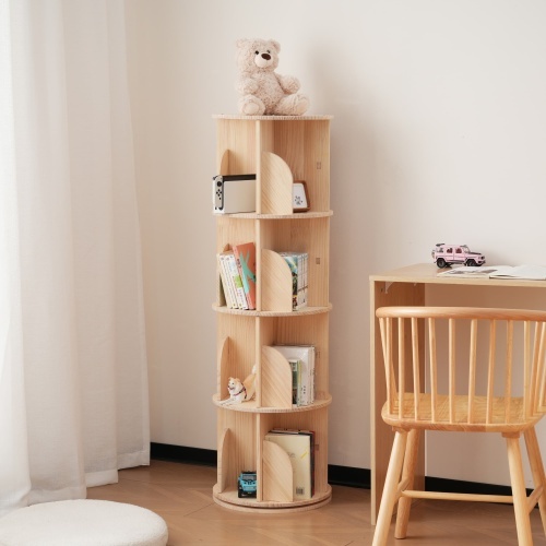 【4段-回転盤タイプ】無垢材 回転式本棚 飾り棚 絵本棚 360°回転本棚 コミック収納棚 本棚 大容量 回転ラック 組立簡単 省スペース