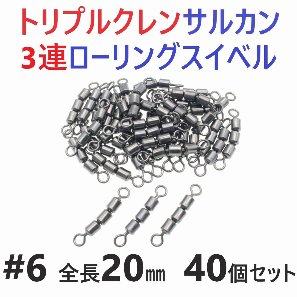 【送料無料】トリプルクレン サルカン 3連 ローリングスイベル #6 全長20㎜ 強度30㎏ 40個セット 強力ヨリモドシ 超回転で糸ヨリ解消!