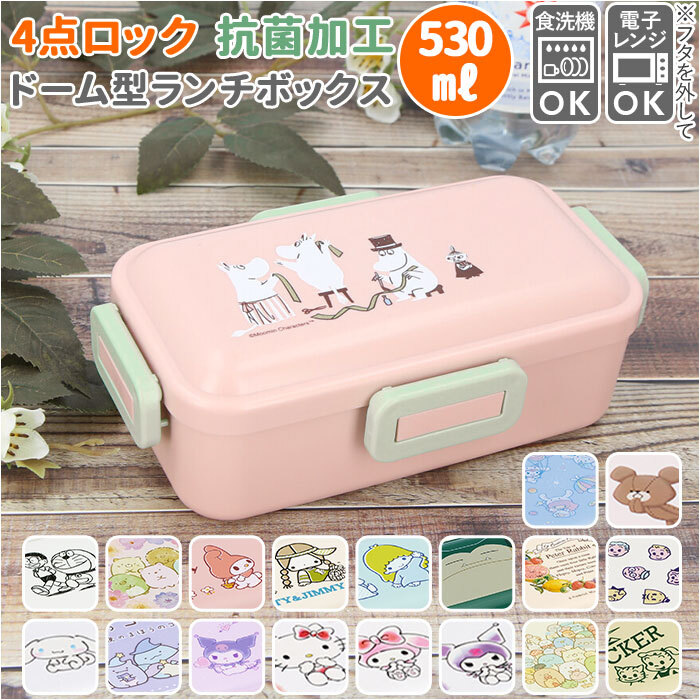 | 商品説明 | ・・ふわっと盛り付けができるドーム型のフタがポイント♪お弁当が可愛く「映える」ランチボックス。 ・のりやふりかけがフタにつきにくく押し潰れを防ぐ!キレイな見た目と美味しさをキープ。 ・・4点ロック式&フタ裏にはパッキン付きで、汁漏れしにくいのも嬉しい♪ ・おかずが片寄りにくい高い仕切り付き。 ・片手で持てるスリムなデザインながら容量はたっぷり530ml。お弁当箱1/2に入るご飯の量は、お茶わん約1.3杯分。(※お茶わん1杯分を約200mlとして算出しています) ・食洗機対応でお手入れがラクチン◎ ・フタを外して電子レンジの使用OK! ・安心の日本製。抗菌効果のある材質を使用しているから、いつも清潔。(※抗菌加工を施しておりますが、すべての細菌の増殖を抑制するものではありません。) ・お気に入りのキャラクター柄ランチボックスで、毎日のお弁当タイムがもっと楽しみになりそう♪ |