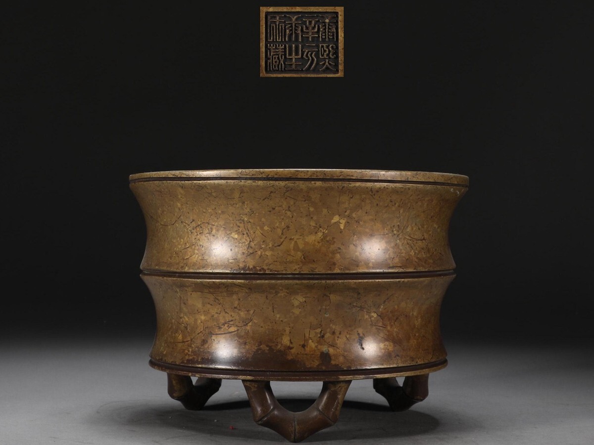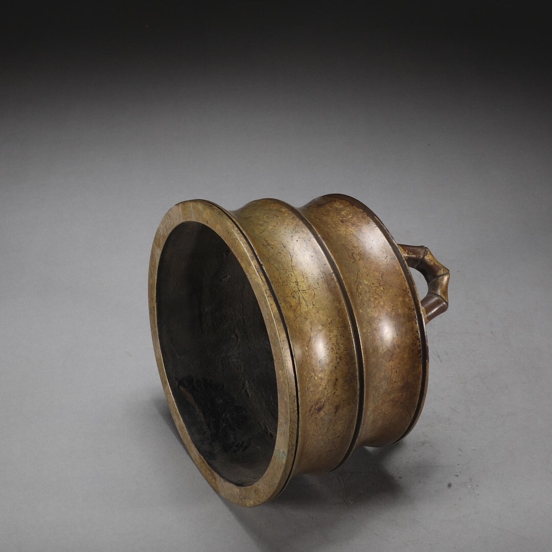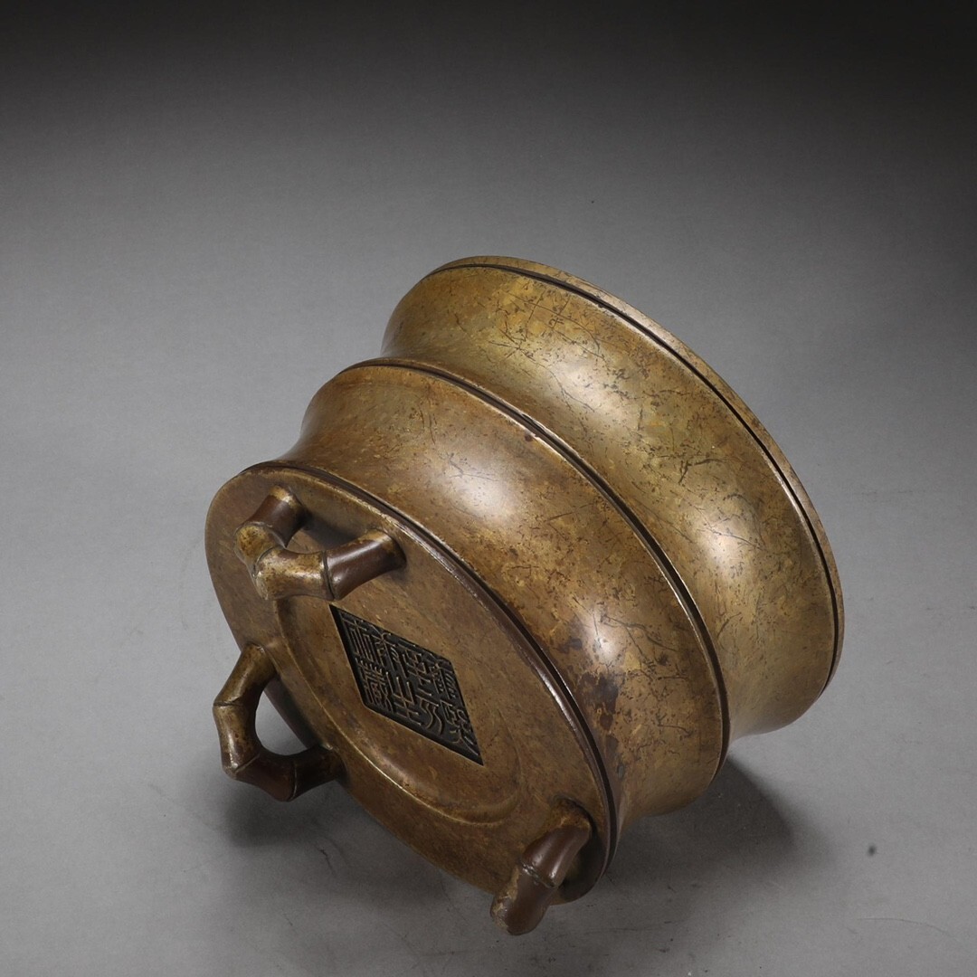 「清代 康熙辛亥庚生氏藏 古銅彫 竹節 筒式老銅香炉」旧銅器 置物擺件 賞物 中国古美術 旧蔵出