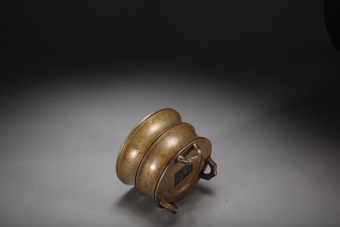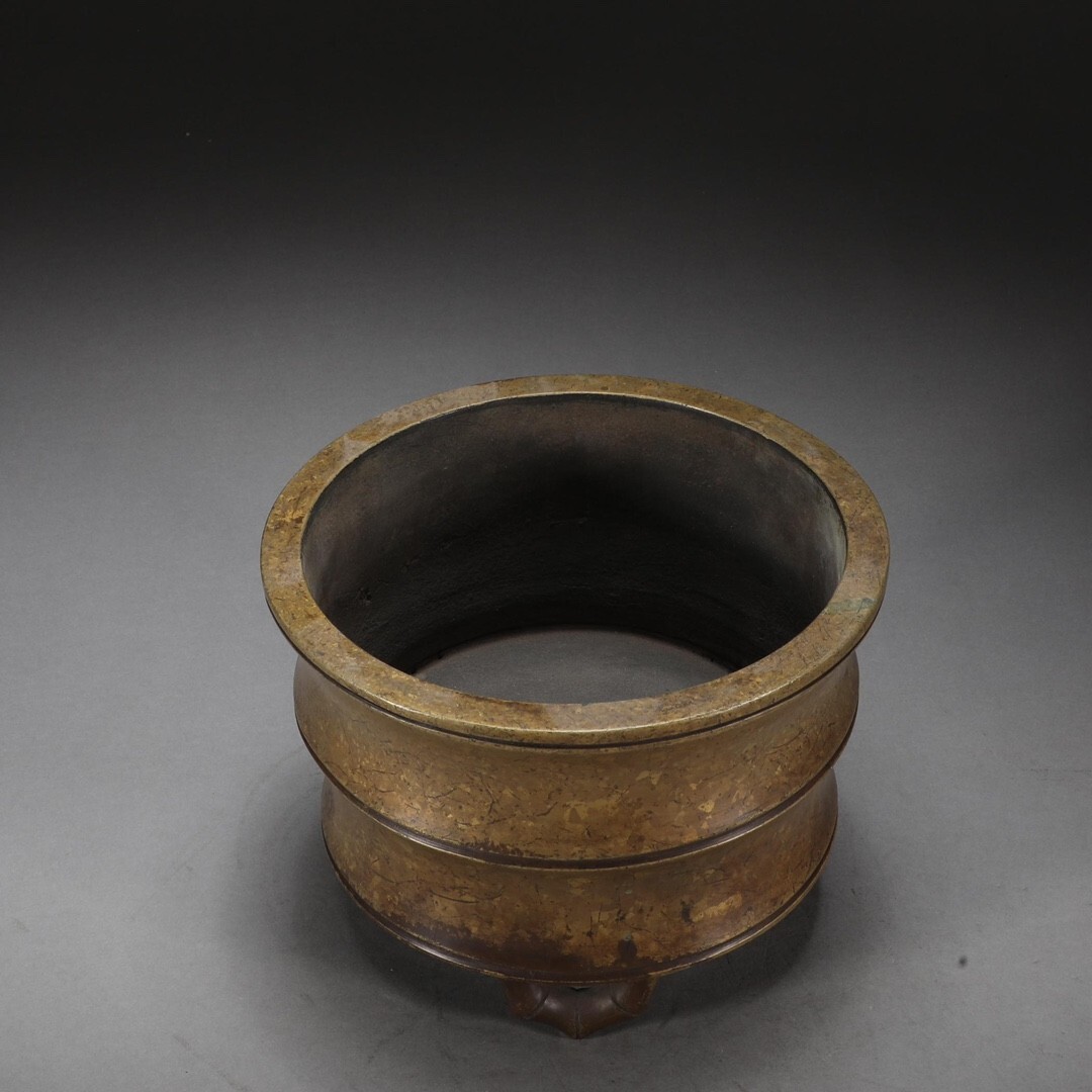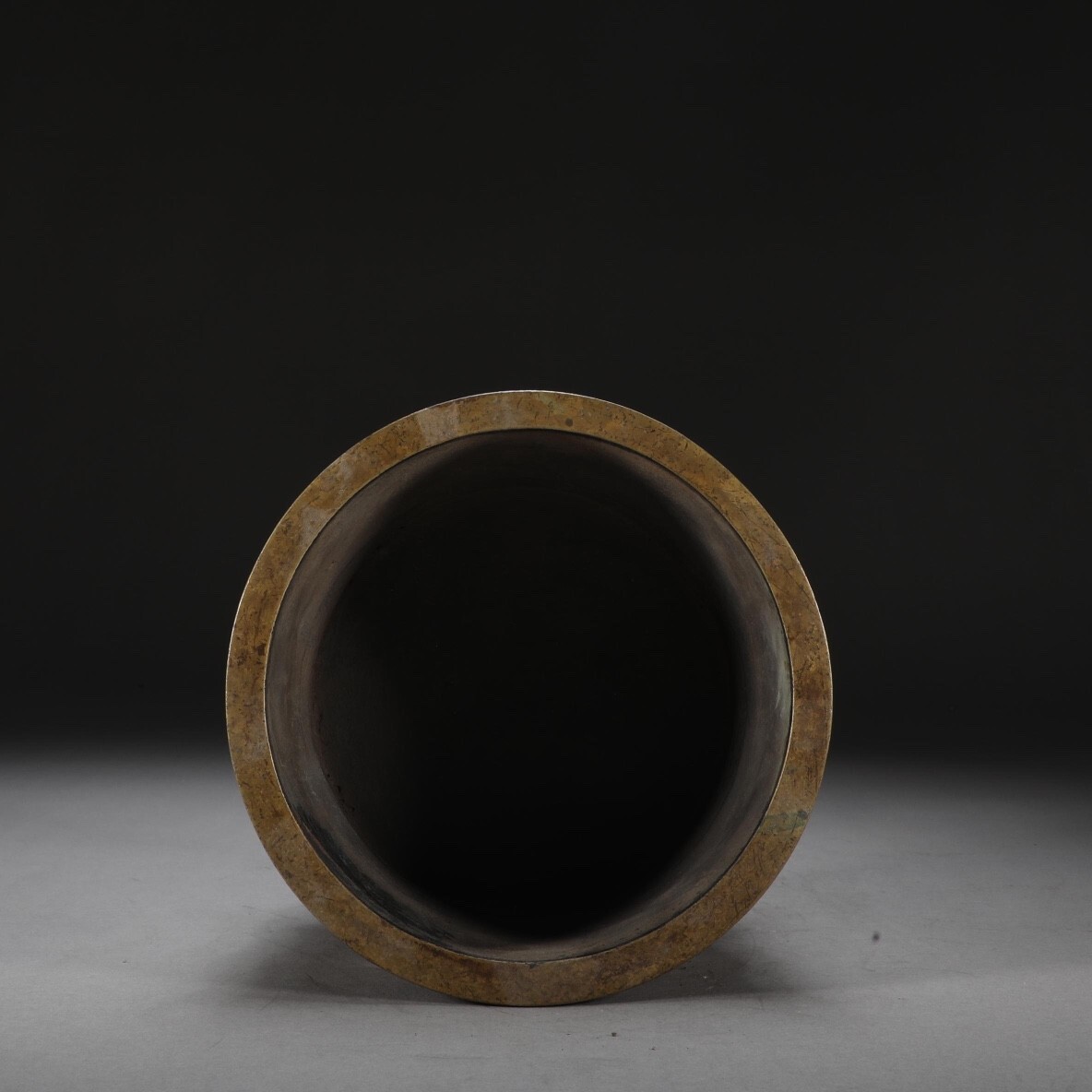 「清代 康熙辛亥庚生氏藏 古銅彫 竹節 筒式老銅香炉」旧銅器 置物擺件 賞物 中国古美術 旧蔵出