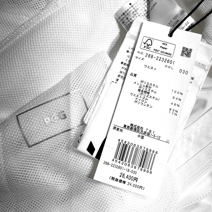 ポリエステル100% メッシュ部分:ポリエステル54% 複合繊維(ポリエステル)46% ウエストゴム:ナイロン83% ポリウレタン17% |