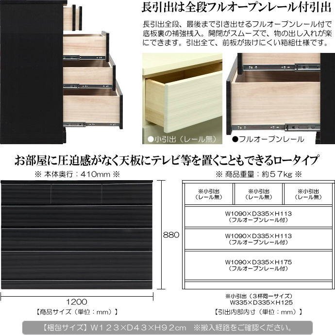 | 【商品名】 | シンプルなモダンデザインの幅120cmローチェスト(ブラック色) | |