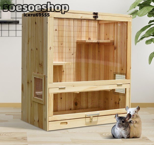 ★小動物 ゴールデンハムスター ハムスターケージ 飼育ケース ケース ハウス 小屋 木製 前開き 透明 通気 組立式 天板開閉